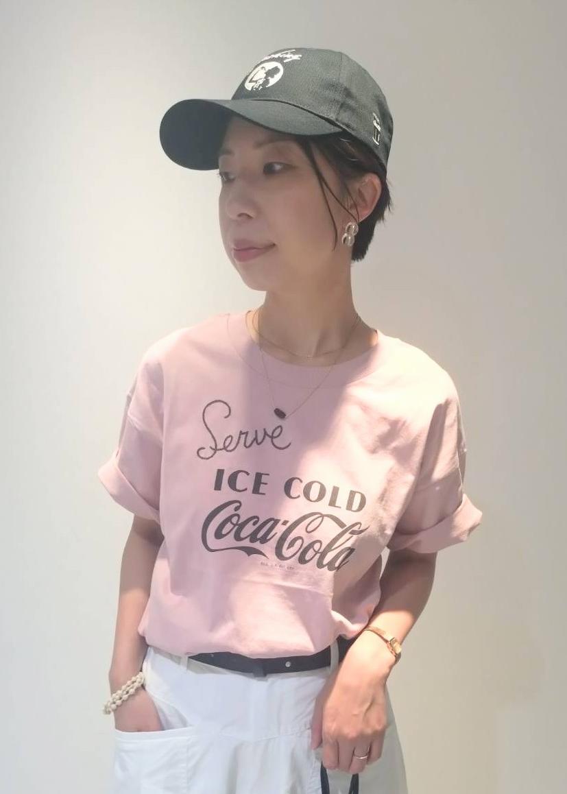 VIS【Coca-Cola】VIS別注フォト&ロゴプリントアソートTシャツピンク / F¥3,850レビューCoca-Colaのロゴが大人可愛いTシャツ☆