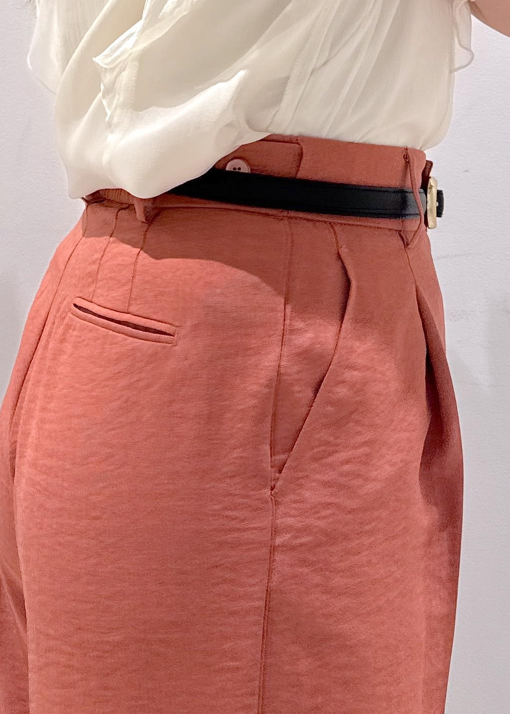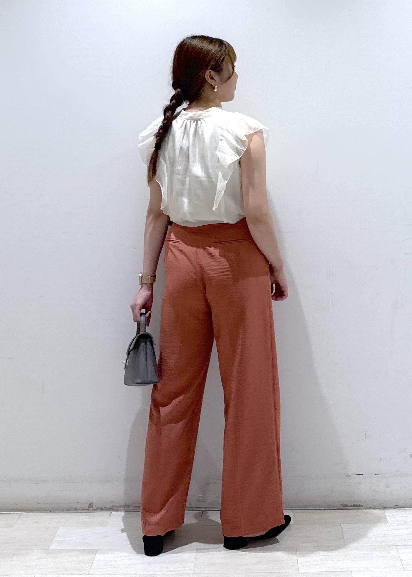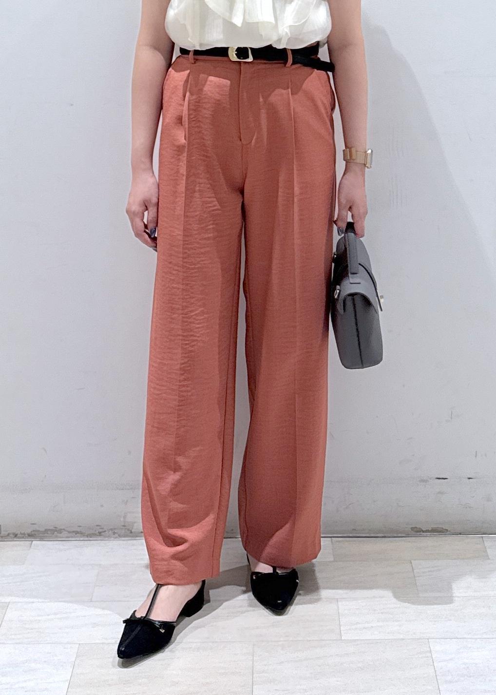 リネンライクのワイドパンツは接触冷感付きでもあるので、サラッとしていてシワにもなりにくくこの時期にとてもオススメです。