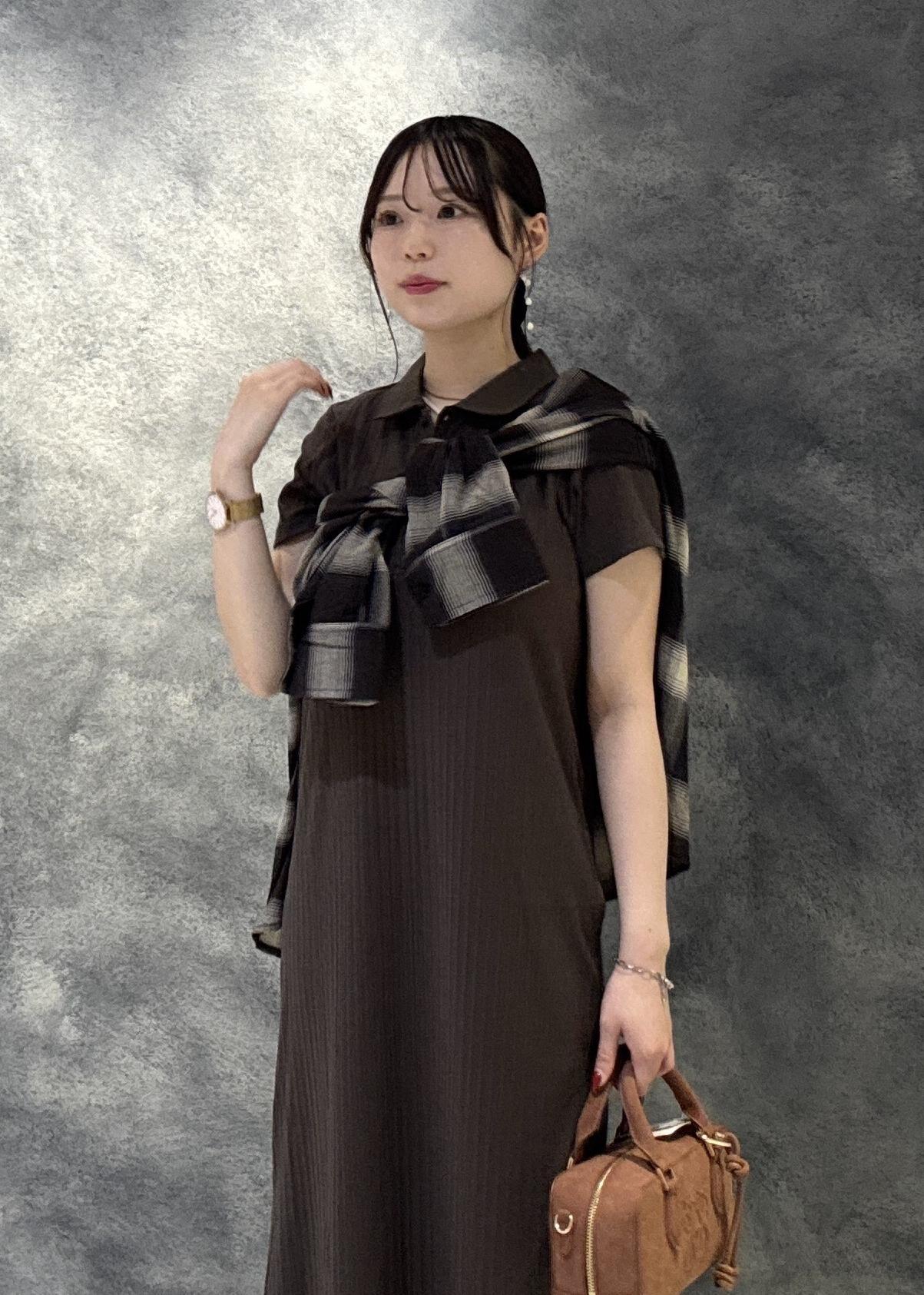VISポロ衿ランダムリブワンピースダークブラウン / F¥4,612レビュー程よくゆとりはありますが、大きすぎないのでスッキリ見せてくれます!
