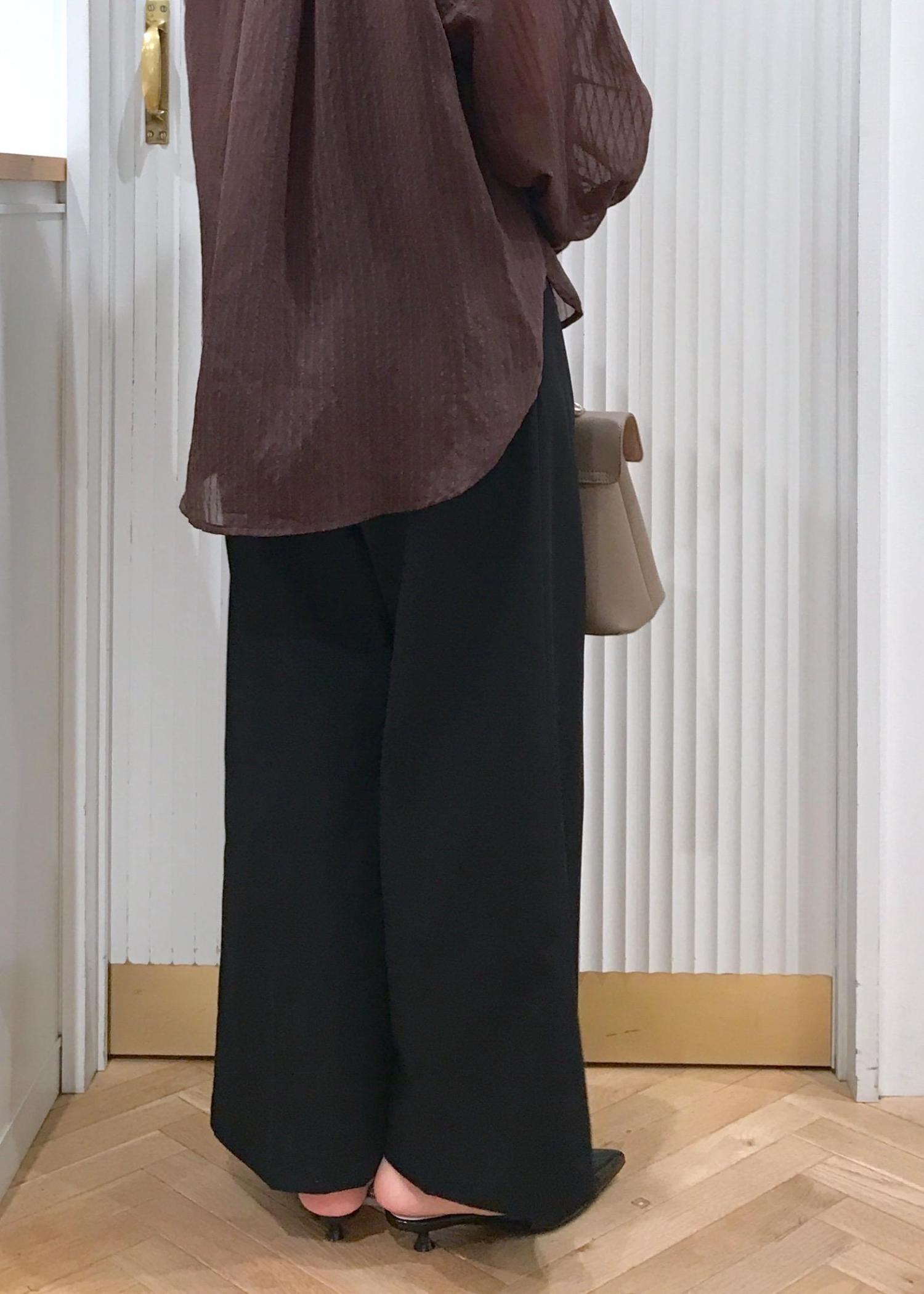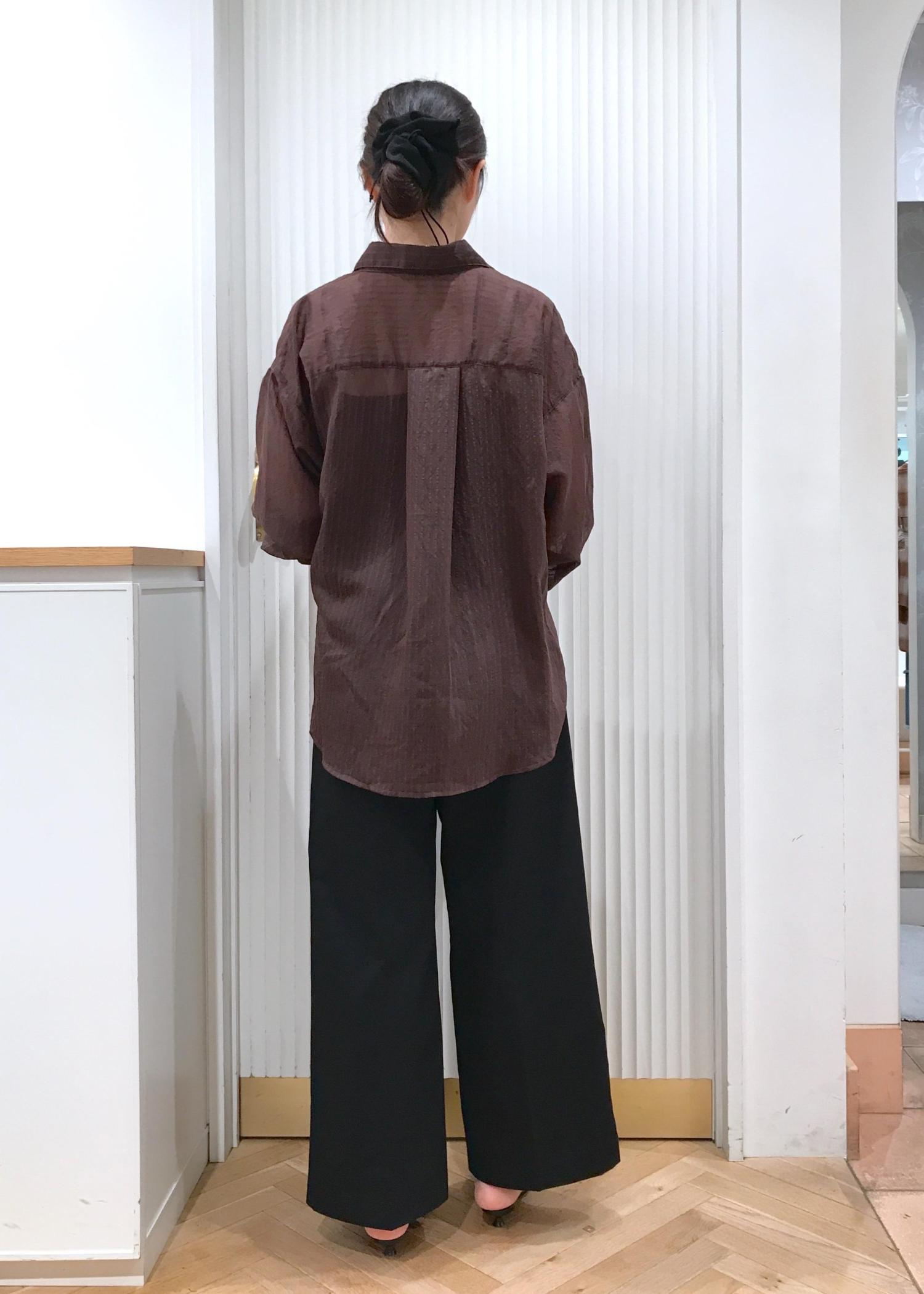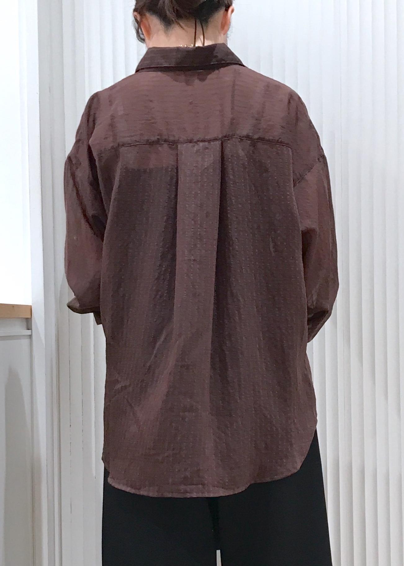 暑い季節が続いても徐々に秋物も欲しくなる季節なので、シアーのシャツをブラウンにすると涼しく秋見え出来るのでおすすめですよ。