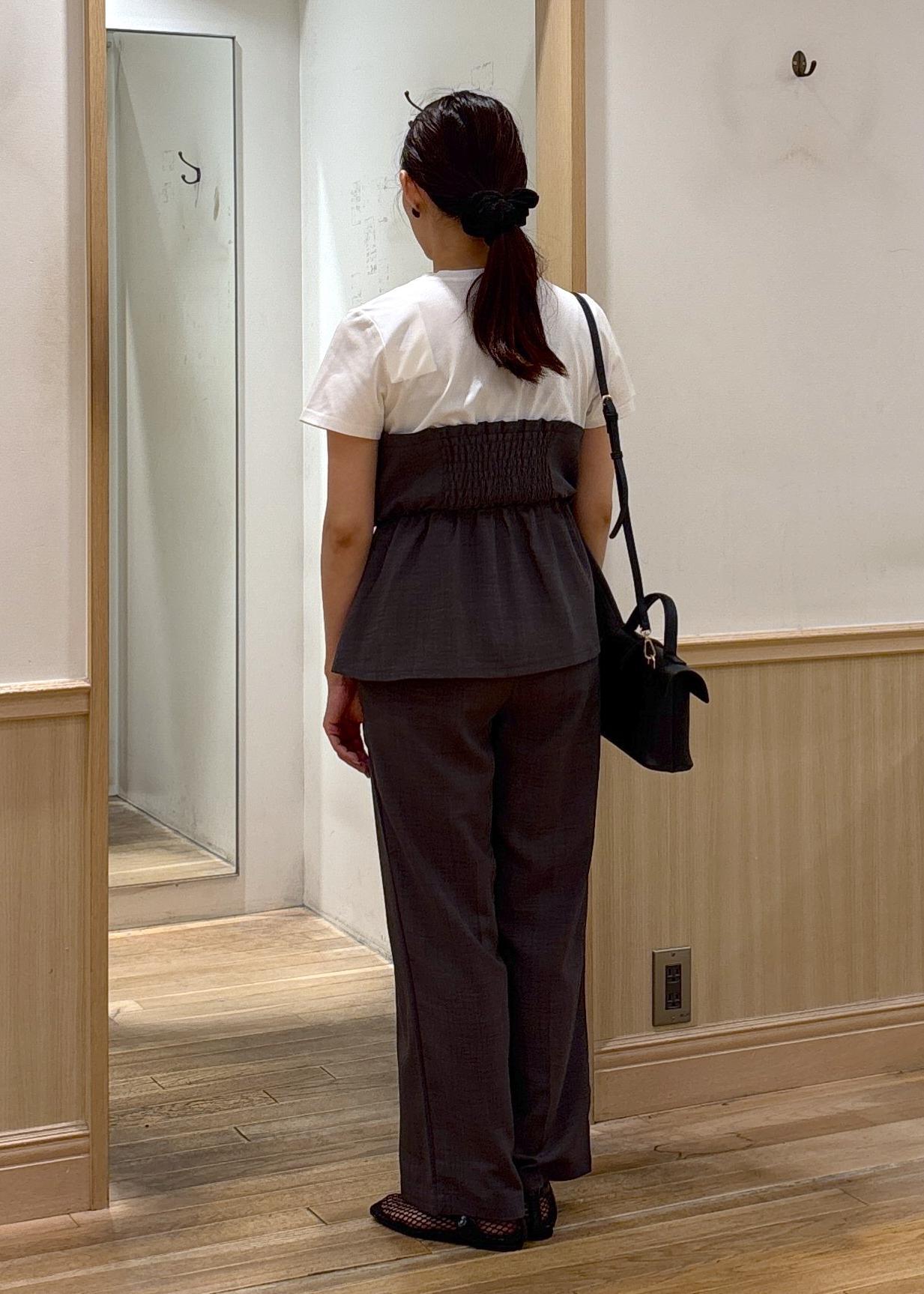 ウエストに切り替えがあり、シルエットが綺麗に見えるデザインになっています。