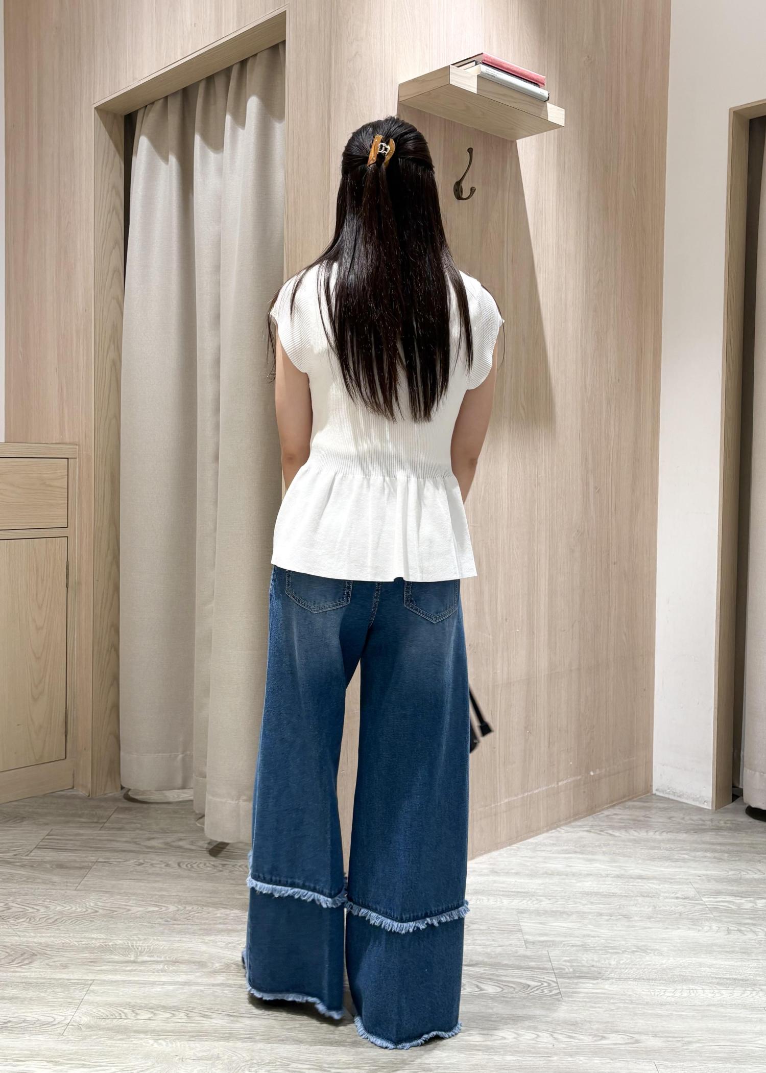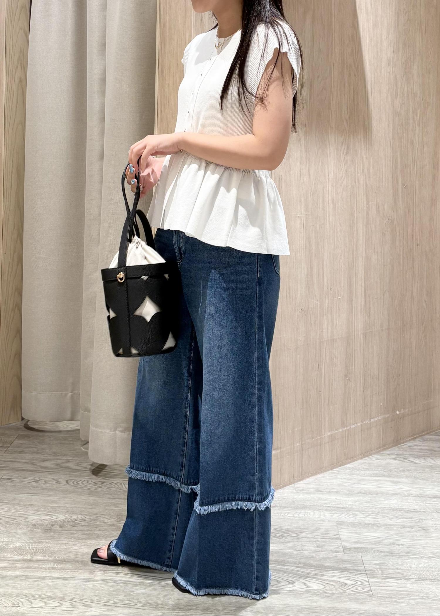VISフリンジフレアデニムブルー系 / S¥4,395レビュー身長152センチで床につきそうな長さでしたが、4〜5センチのヒールや厚底の靴を履けばスッキリと着用できます。
