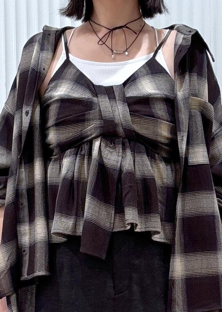VISオンブレチェックリボンビスチェブラック系 / F¥5,489レビュー胸下の位置でゴムが入っているのでジャストサイズで着ていただけます