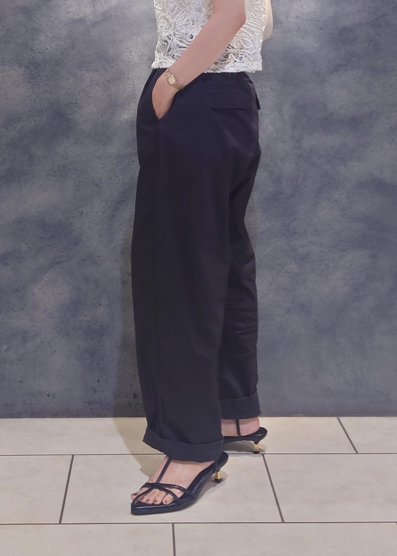 膨らみの少ないバレルパンツなので、スッキリしたシルエットで着て頂けます。