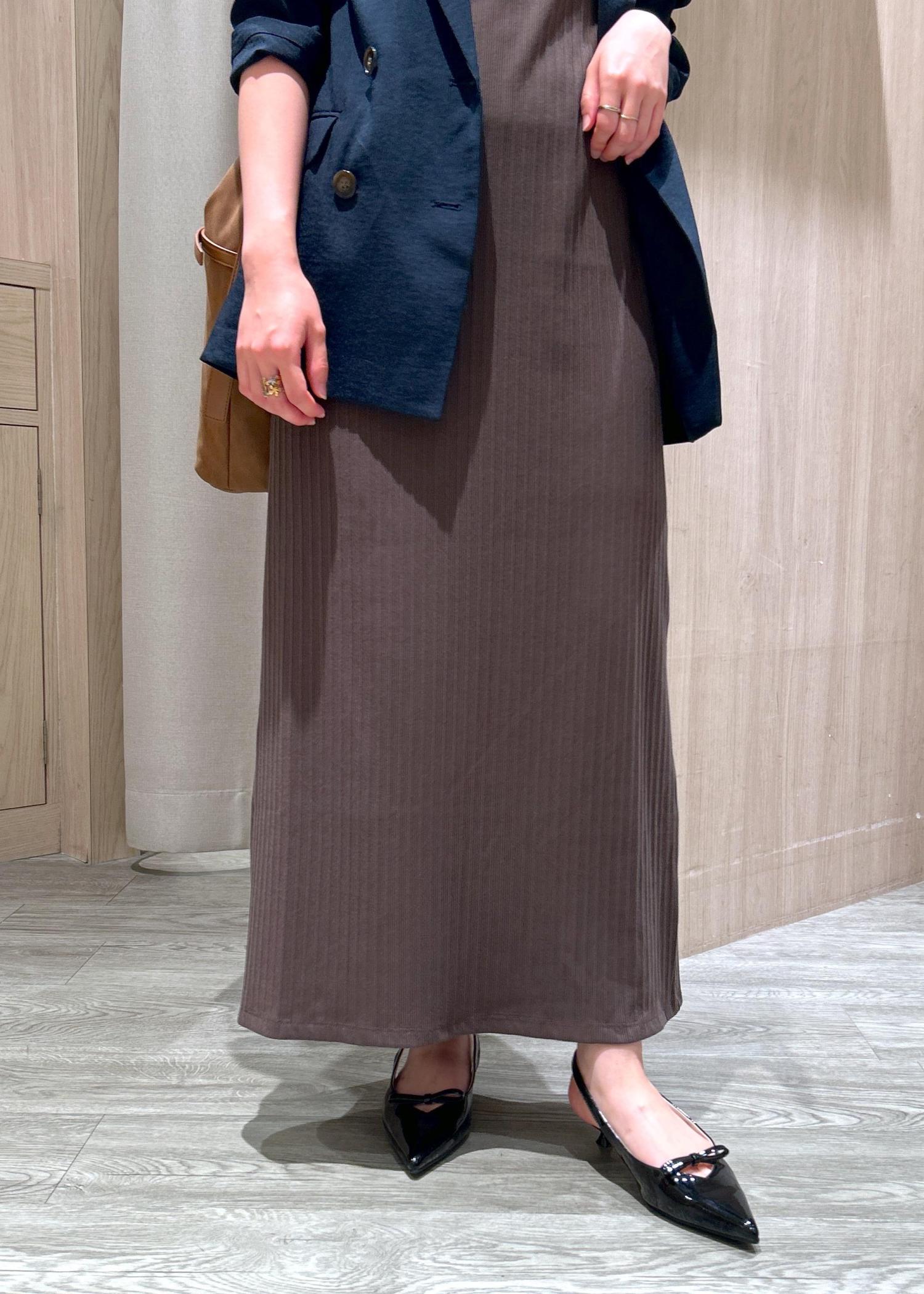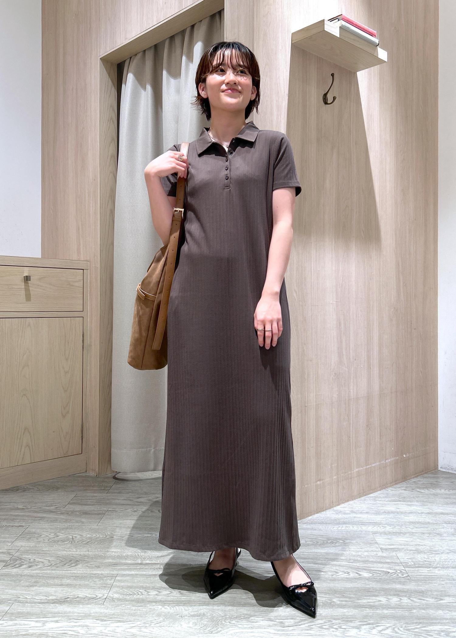 VISポロ衿ランダムリブワンピースダークブラウン / F¥4,612レビュー身長155cm、足首が隠れる丈感です。