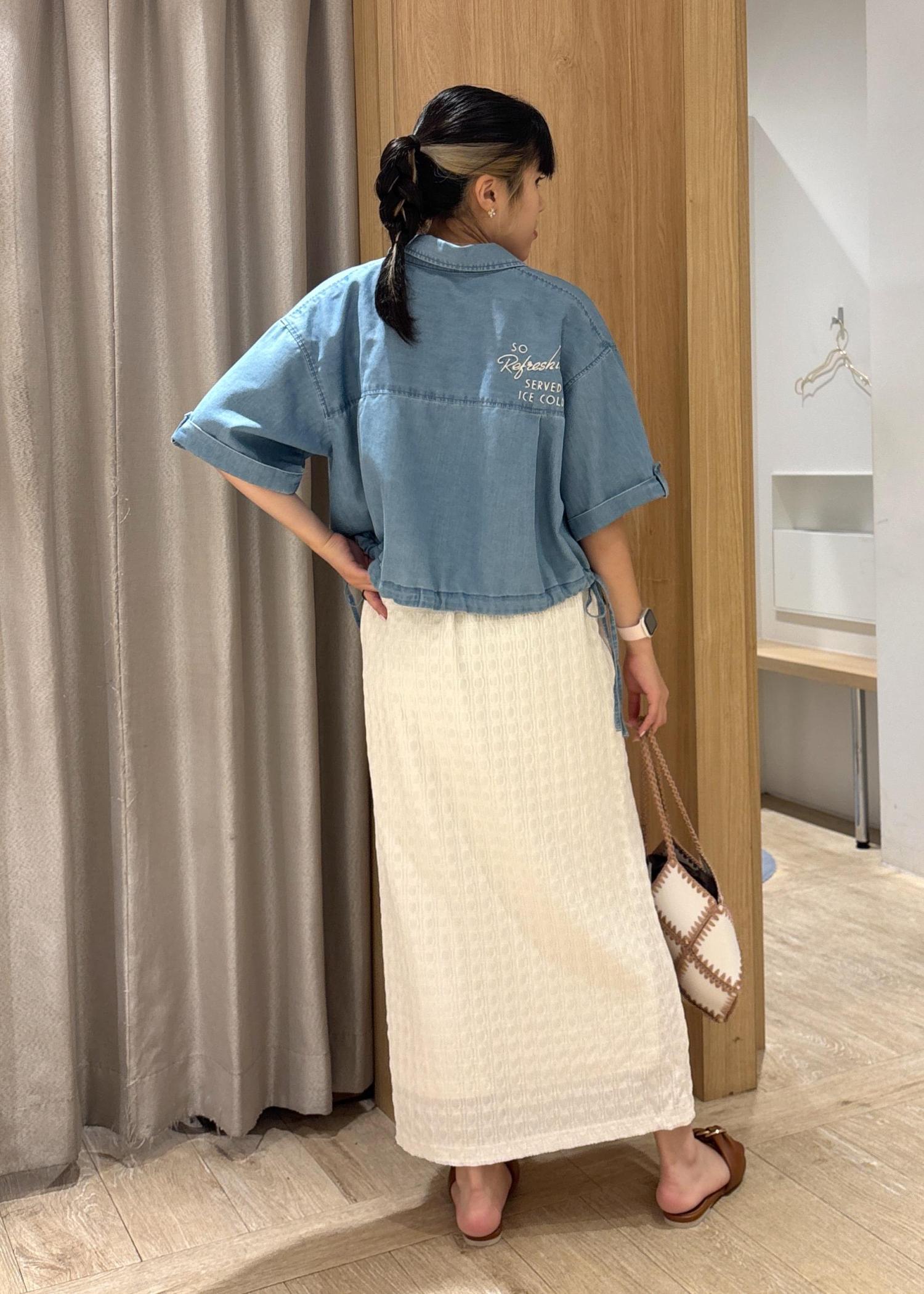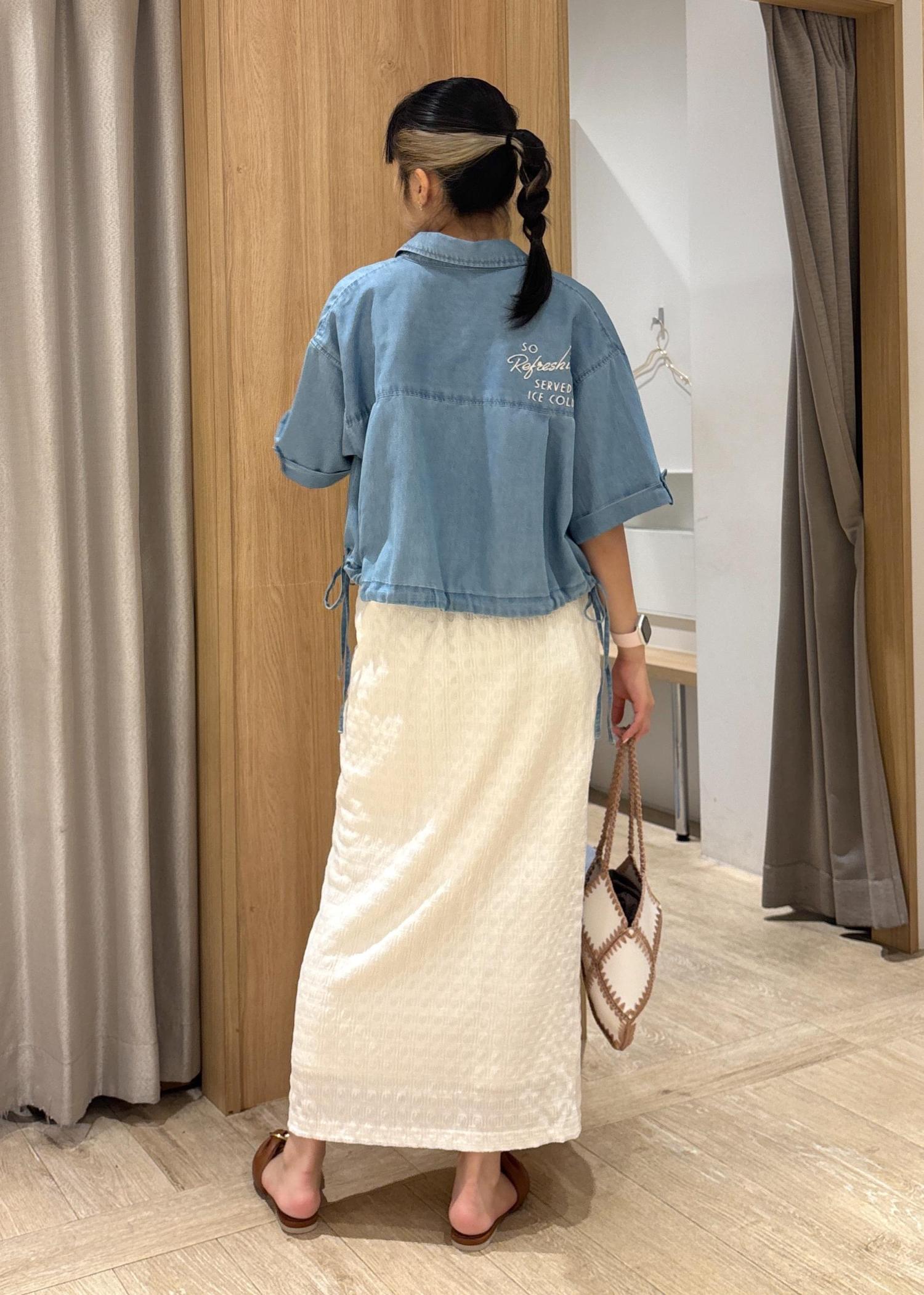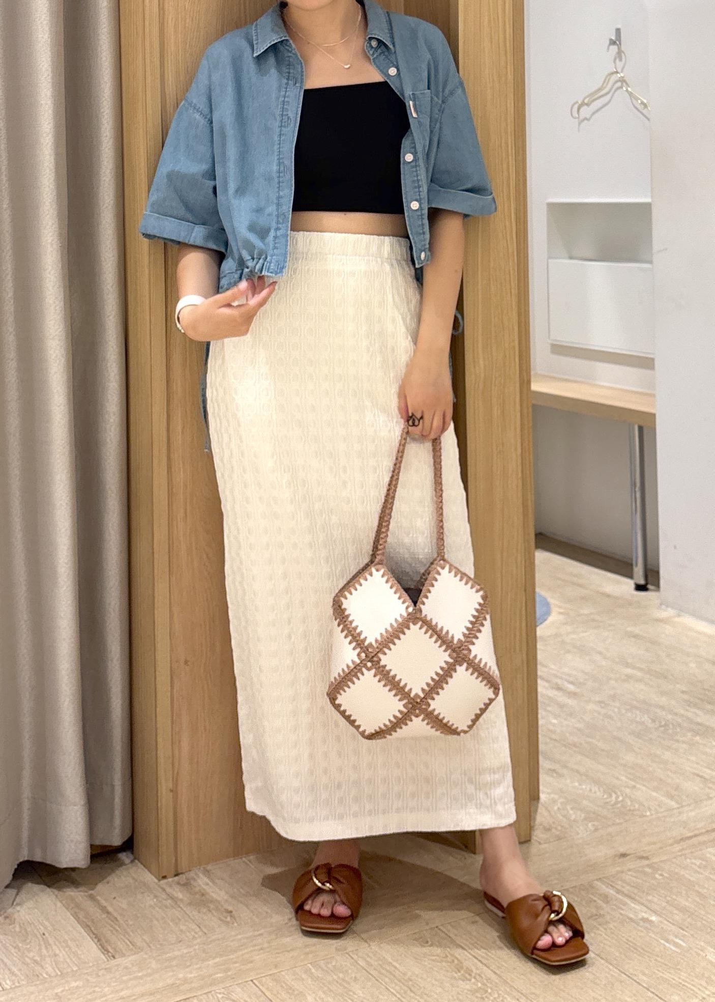 アウトレットVIS【新色追加】【接触冷感】膨れジャガードナロースカートオフホワイト / F¥3,293レビュー夏らしい素材のタイトスカートで模様も入っていますが主張しすぎないアイテムのため合わせやすいです☺︎