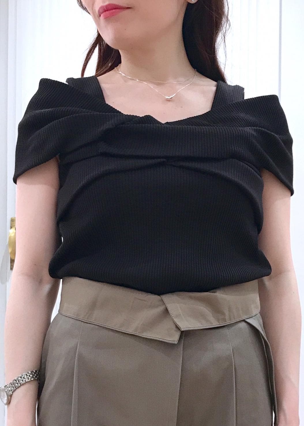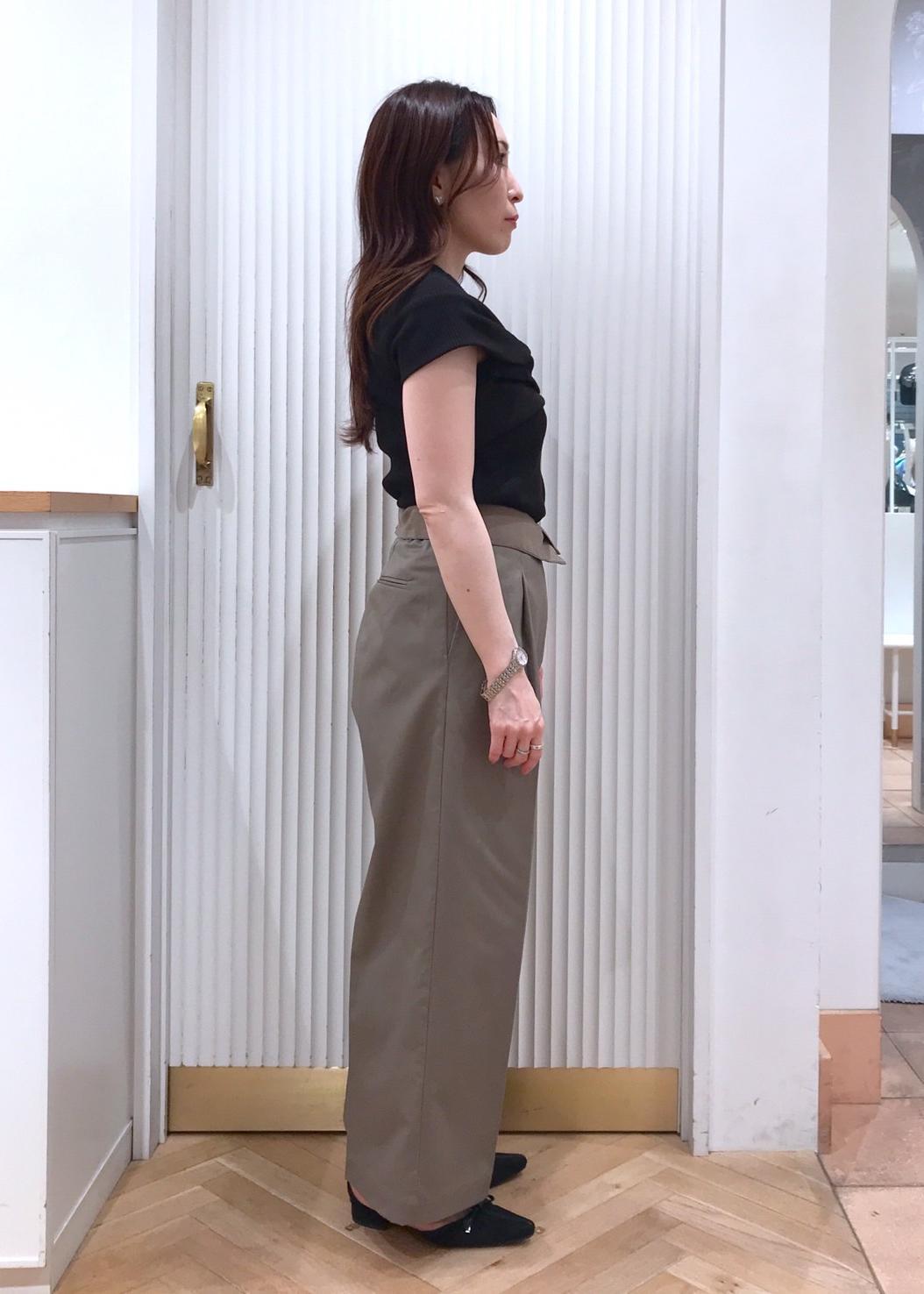 トップスは肩を覆っても着られるので、露出を調節できて通勤にもおすすめです。