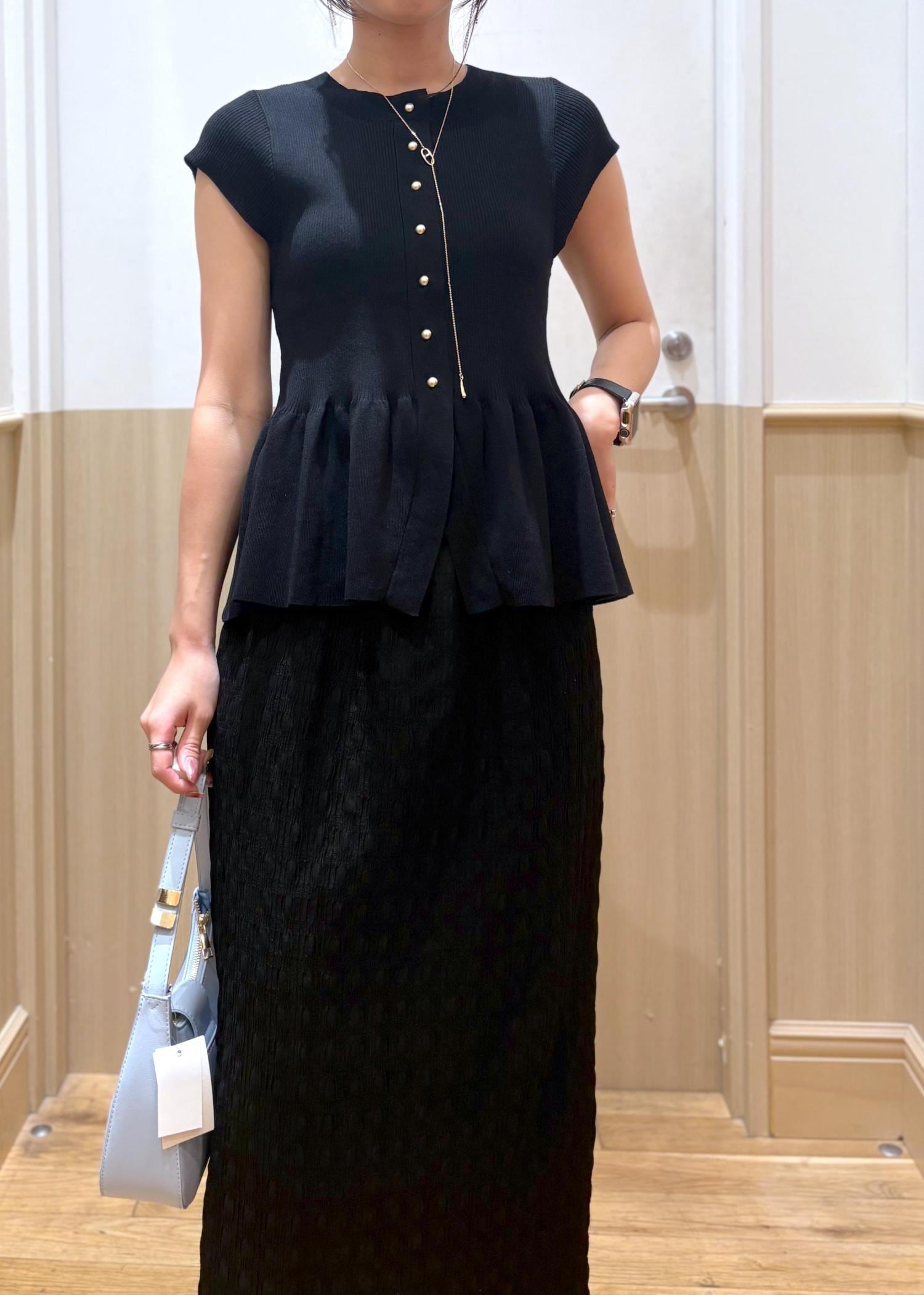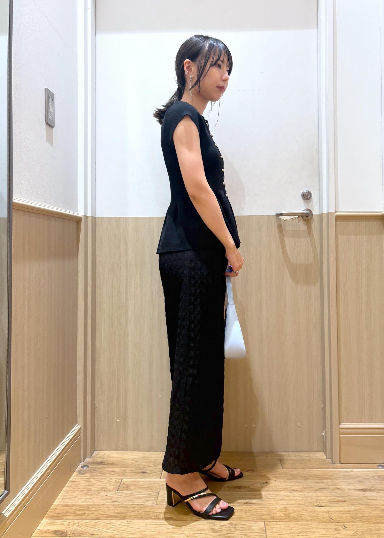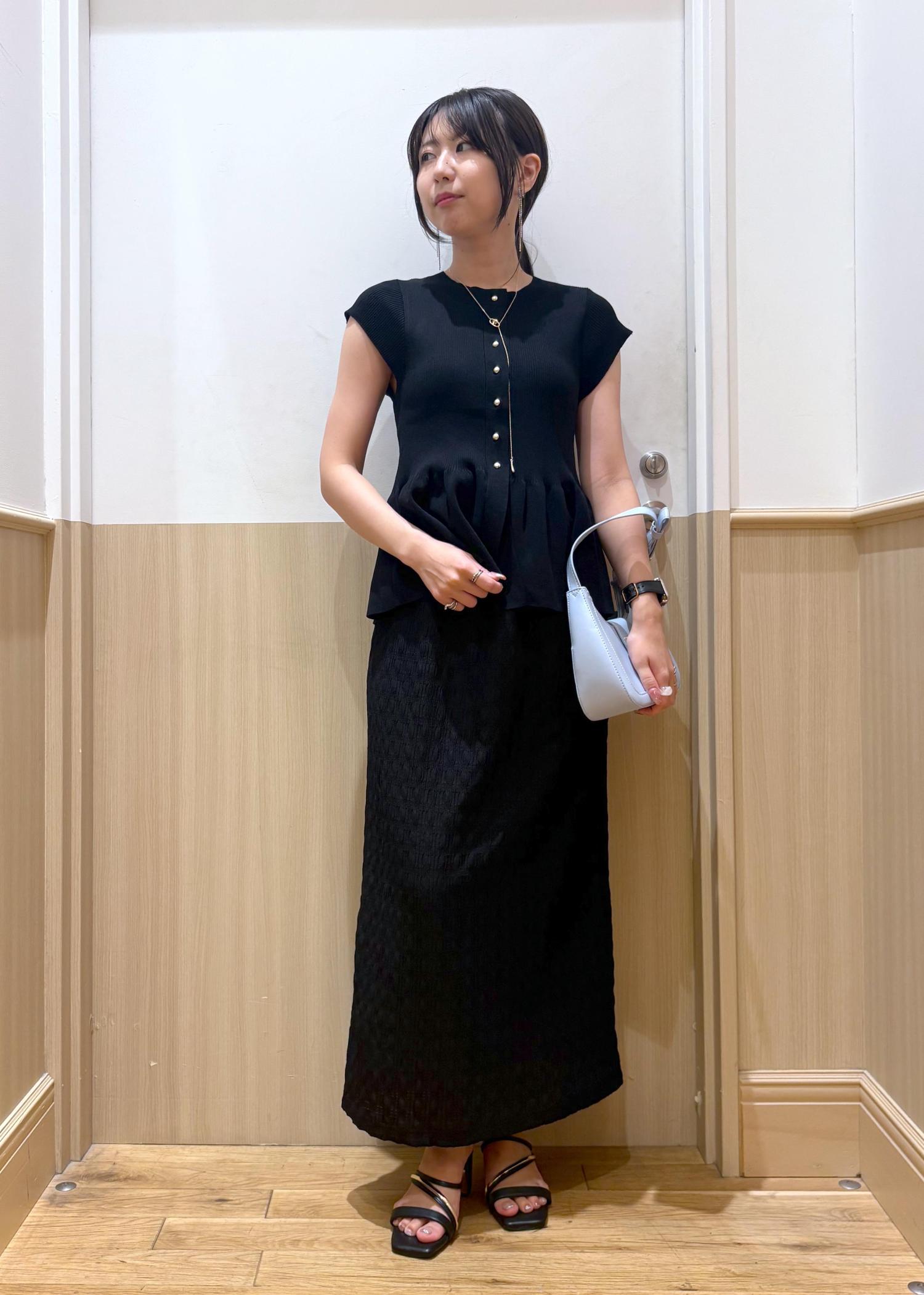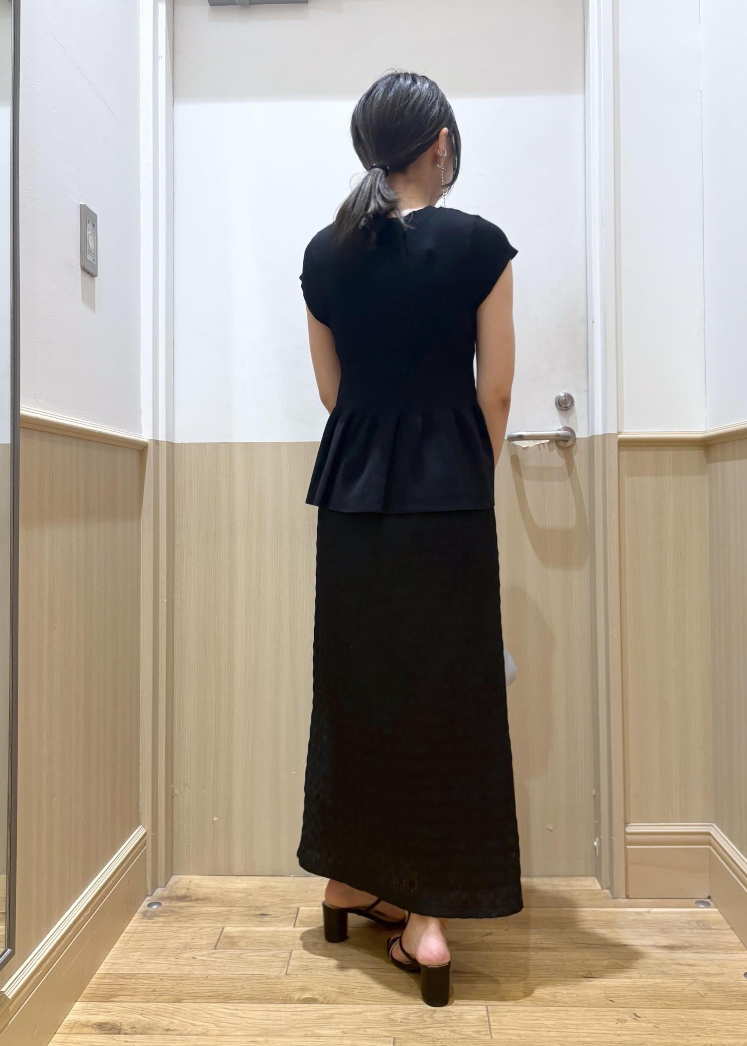 丈は156センチで腰くらいで、おへそ上くらいからパプラムの広がりがあります! -