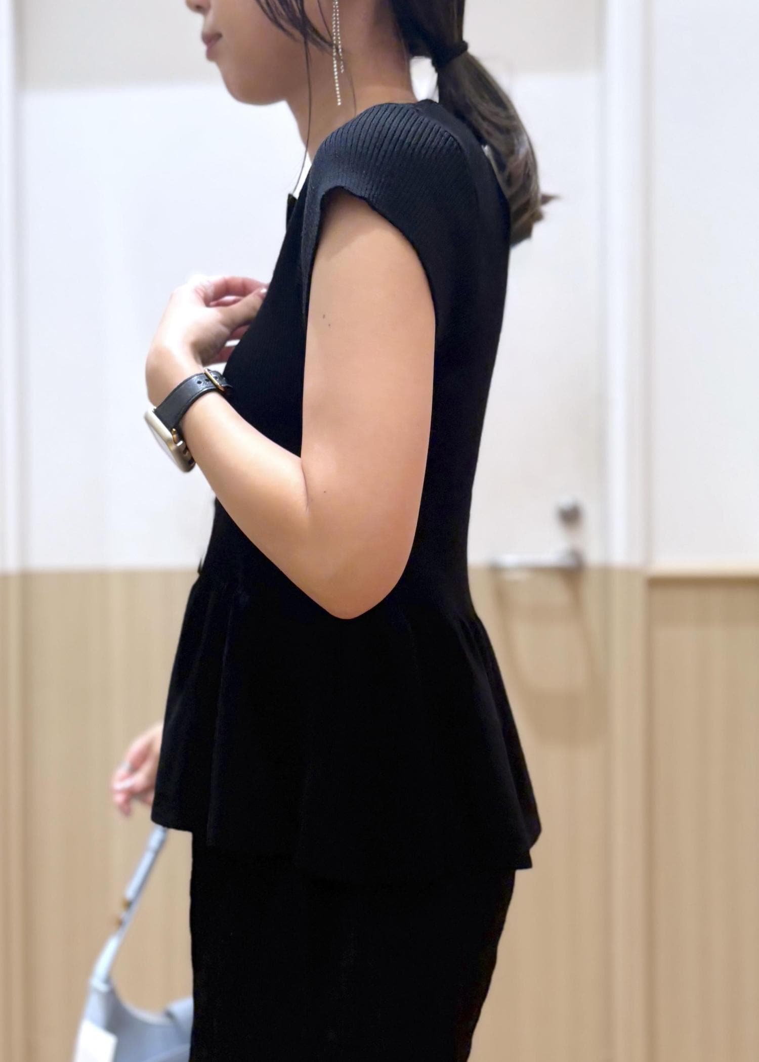 袖はフレンチスリーブなので涼しく着れます。ギリギリインナーが見えないくらいの脇の開き方でした。