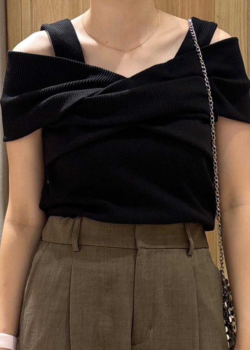 アウトレットVISねじれオフショルプルオーバーブラック / F¥3,072レビュー体にフィットしていてすごく着やすかったです!