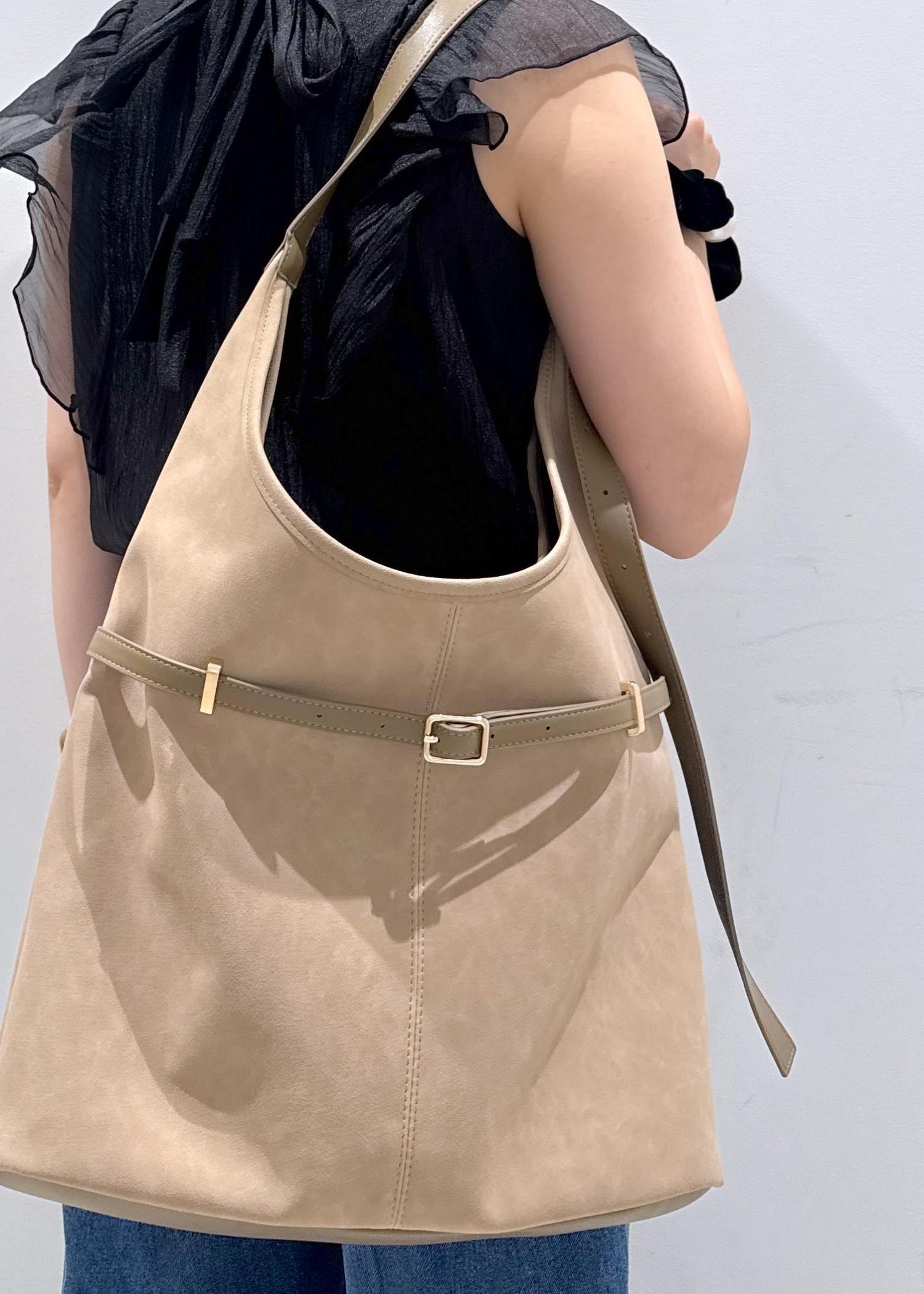 VIS【A4収納】フロントベルトソフトショルダーバッグベージュ系 / F¥5,535レビュー2025年のトレンドであるボーホーバッグ⭐︎2wayでな斜めがけのショルダーとしてもどちらでも使用可能◎