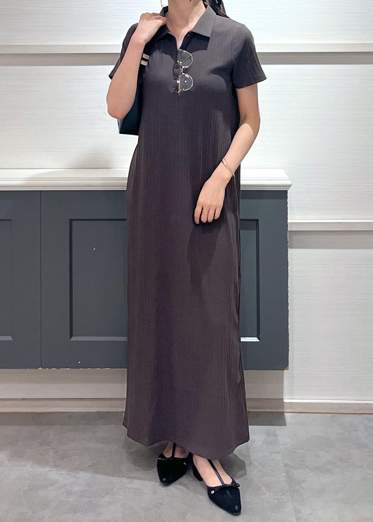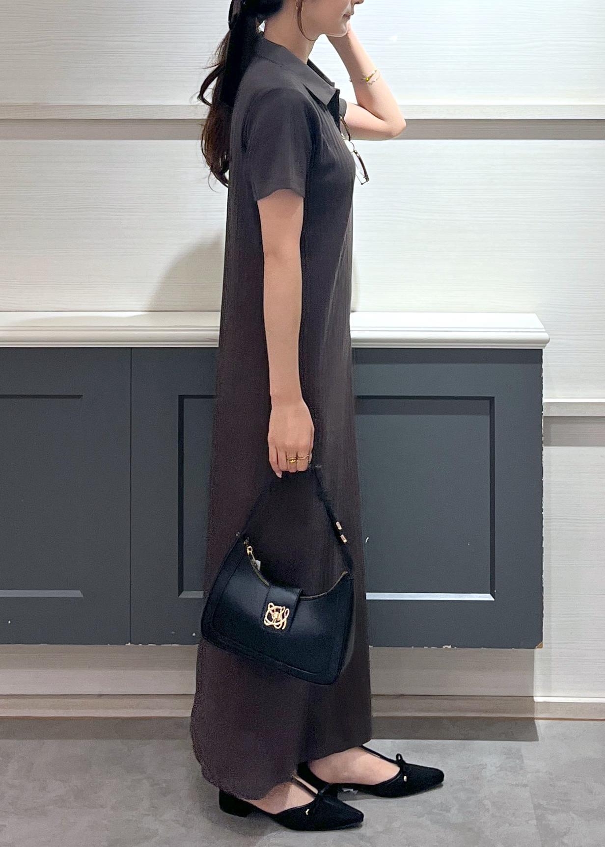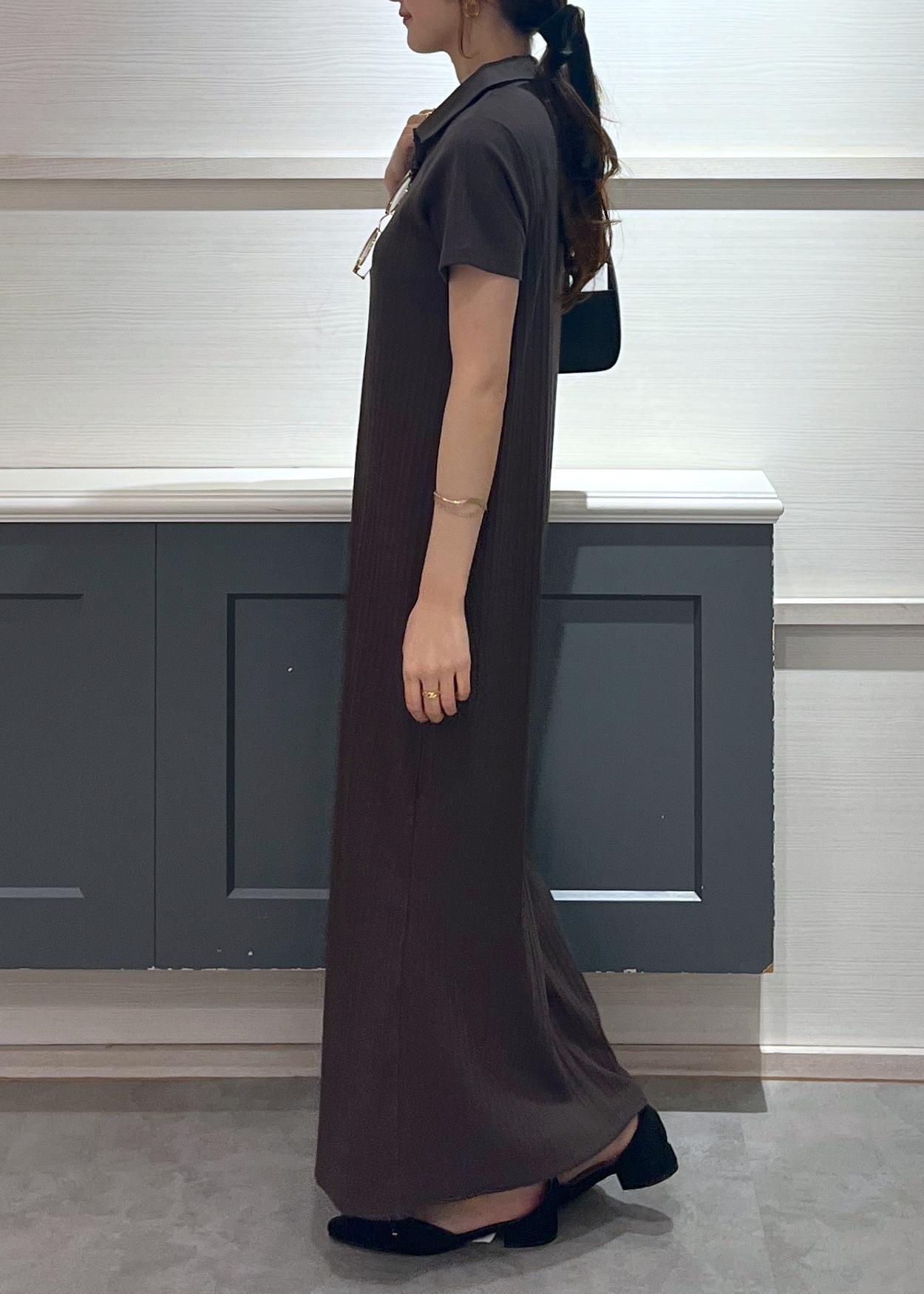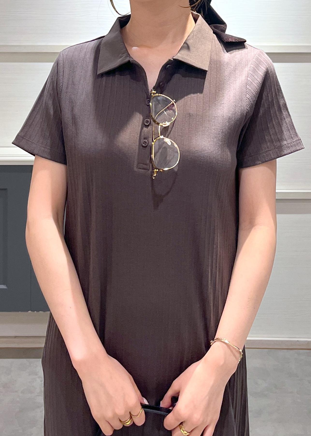 VISポロ衿ランダムリブワンピースダークブラウン / F¥4,612レビュー156cmで足首が隠れる丈感でした。