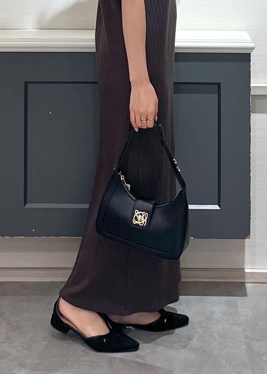 VIS【新色追加】【180℃美人見え】ハンドルリボンワンショルダーバッグブラック / F¥5,929レビューマチがあるのでお出かけのお荷物はしっかりと入ります◎