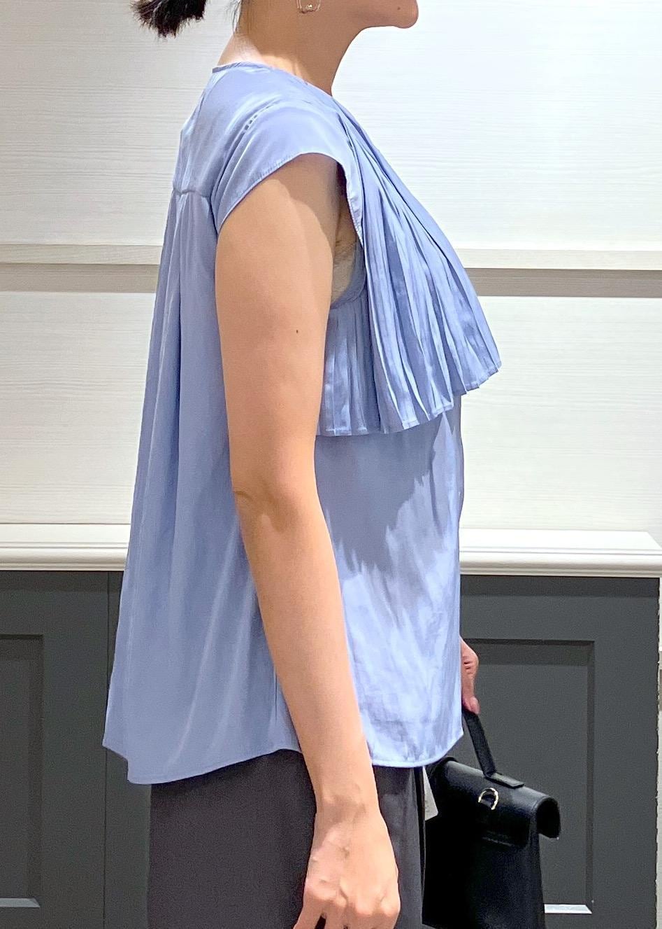 アウトレットVISプリーツデザインブラウス/通勤対応サックス / F¥2,745レビュー骨格ストレートで肩周りが気になる体型ですがフレンチスリーブなので、体型カバーしてくれて細見えしたので嬉しいです♡