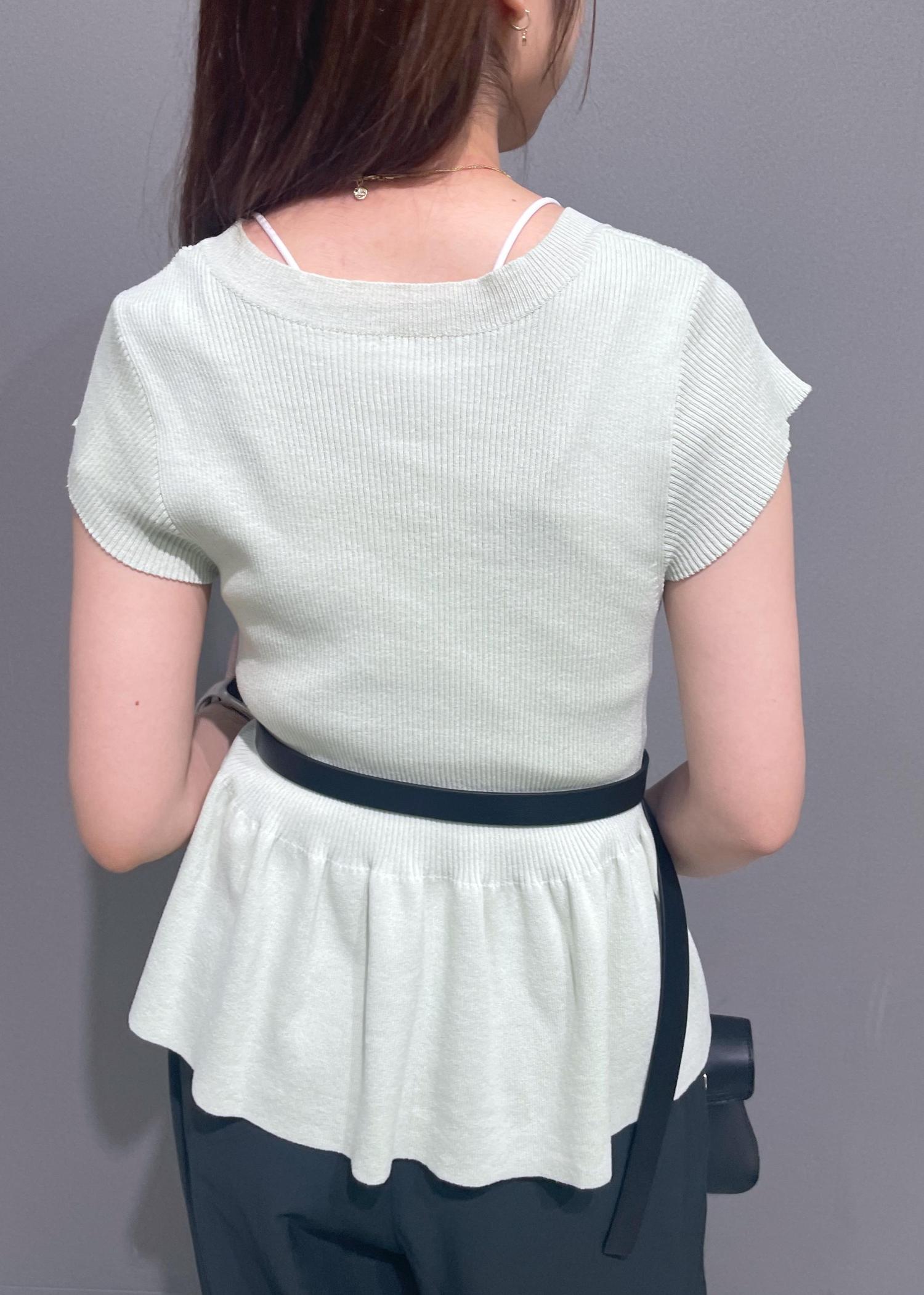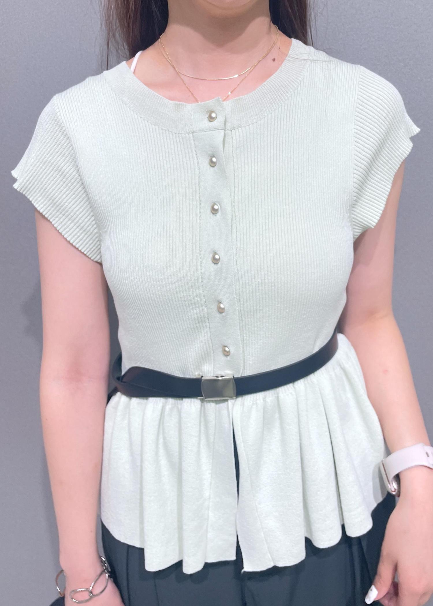 VIS【アンチピリング/洗える】美SMARTショートスリーブペプラムニットライトグリーン / F¥5,489レビューペプラムが腰周りをカバーしてくれて、スッキリ見せてくれるカーディガンです◎