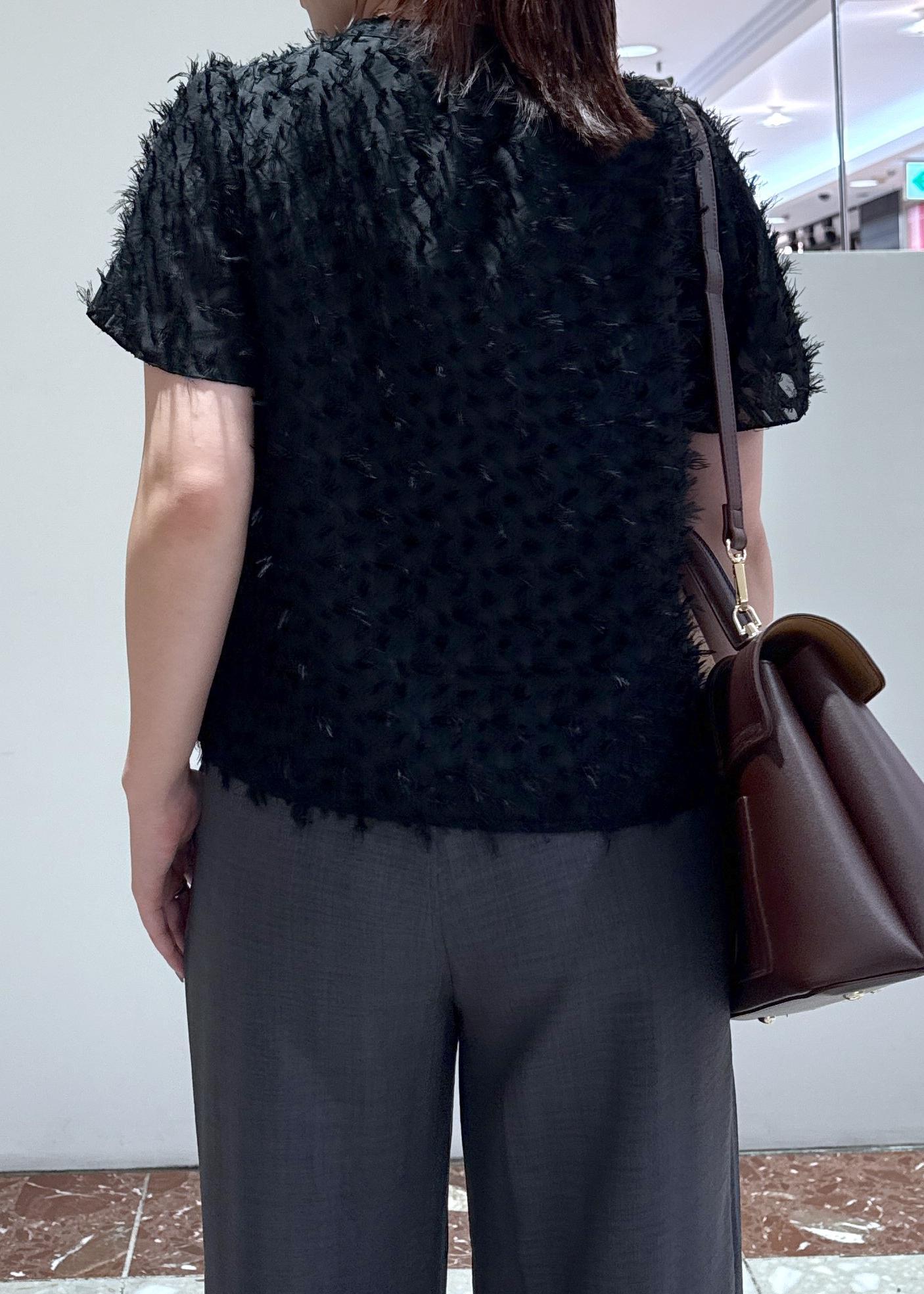 VISチューリップスリーブジャガードスキッパーブラウスブラック / F¥2,963レビューフリンジデザインで着映えと秋を先取りできるトップス!