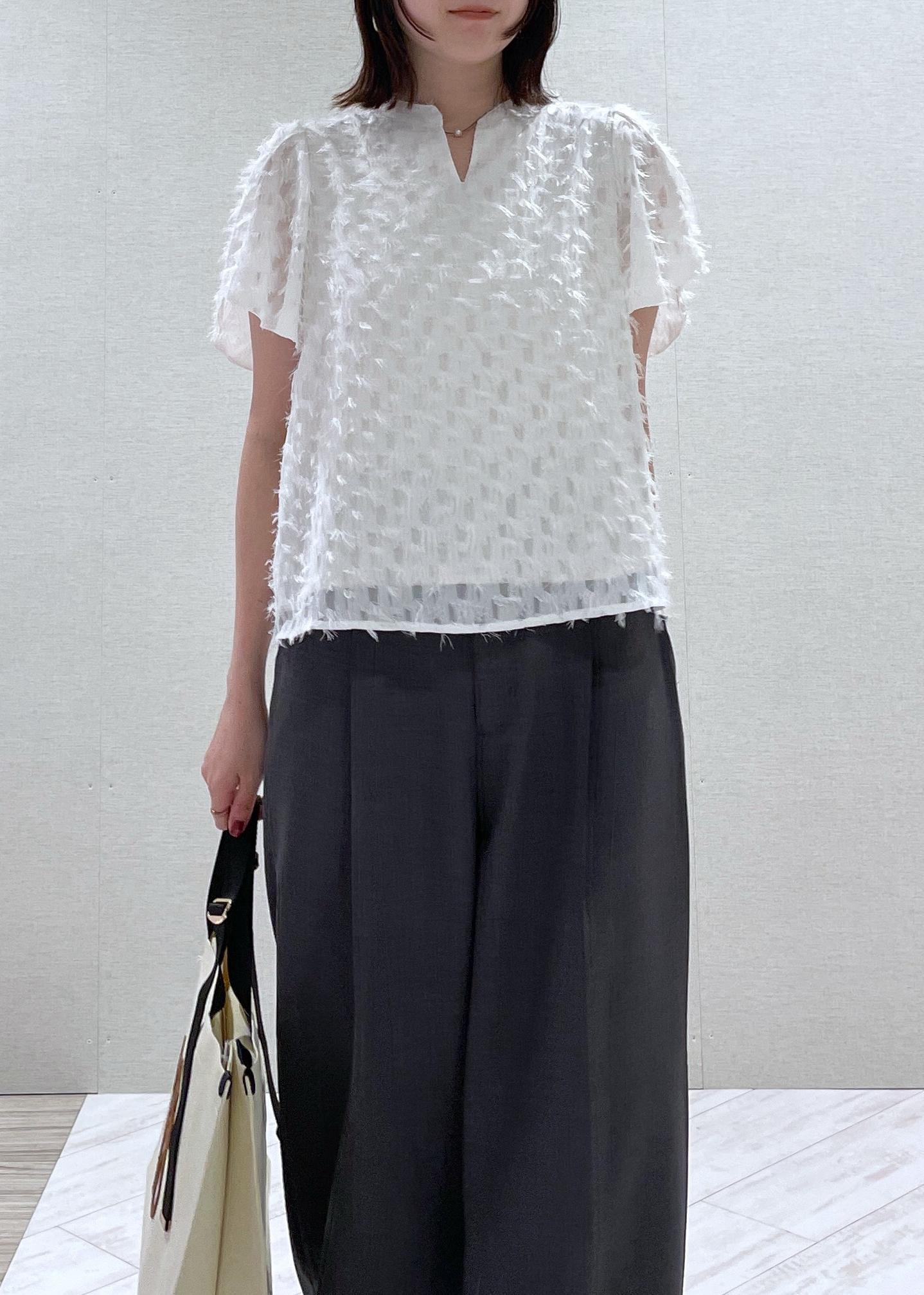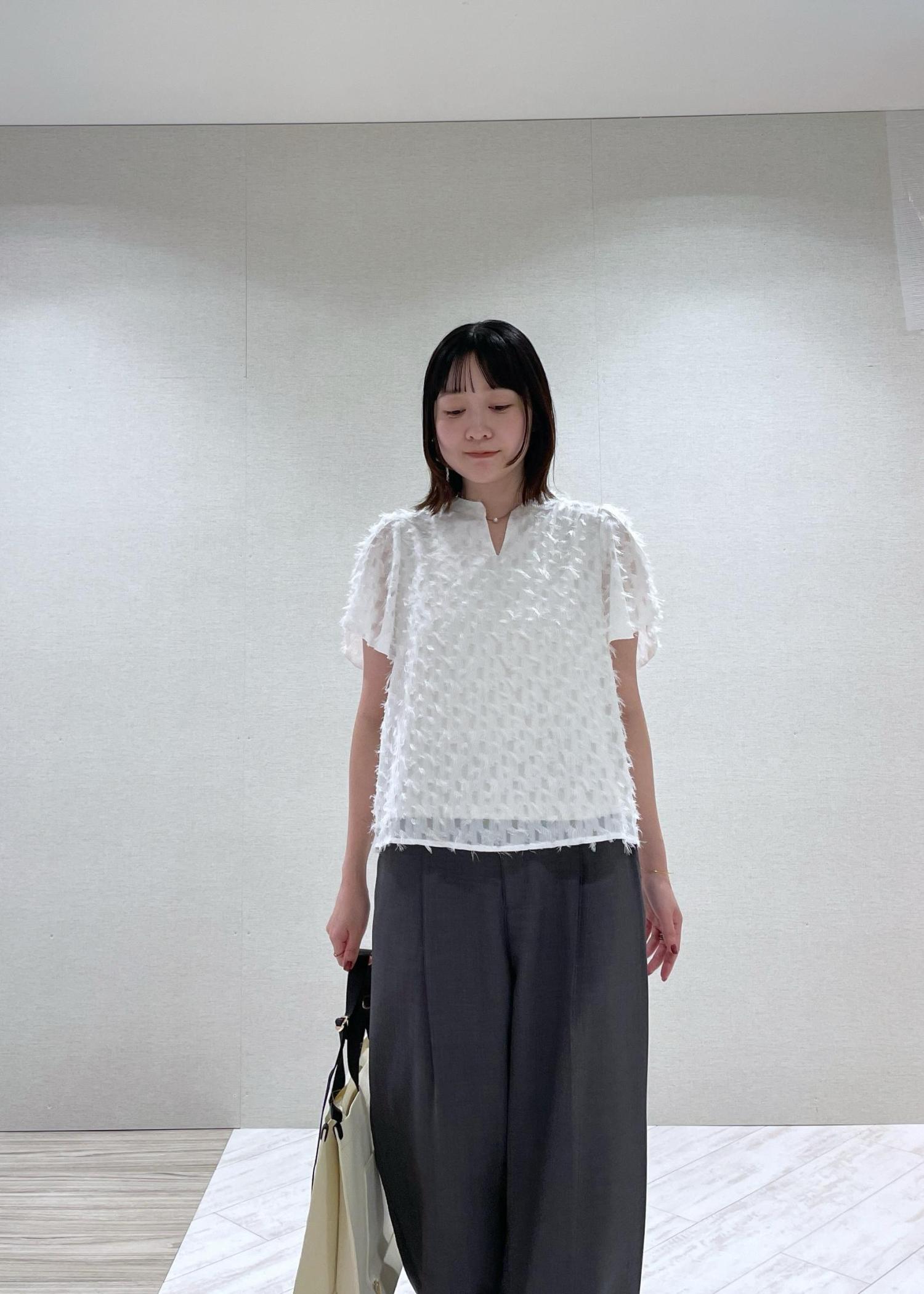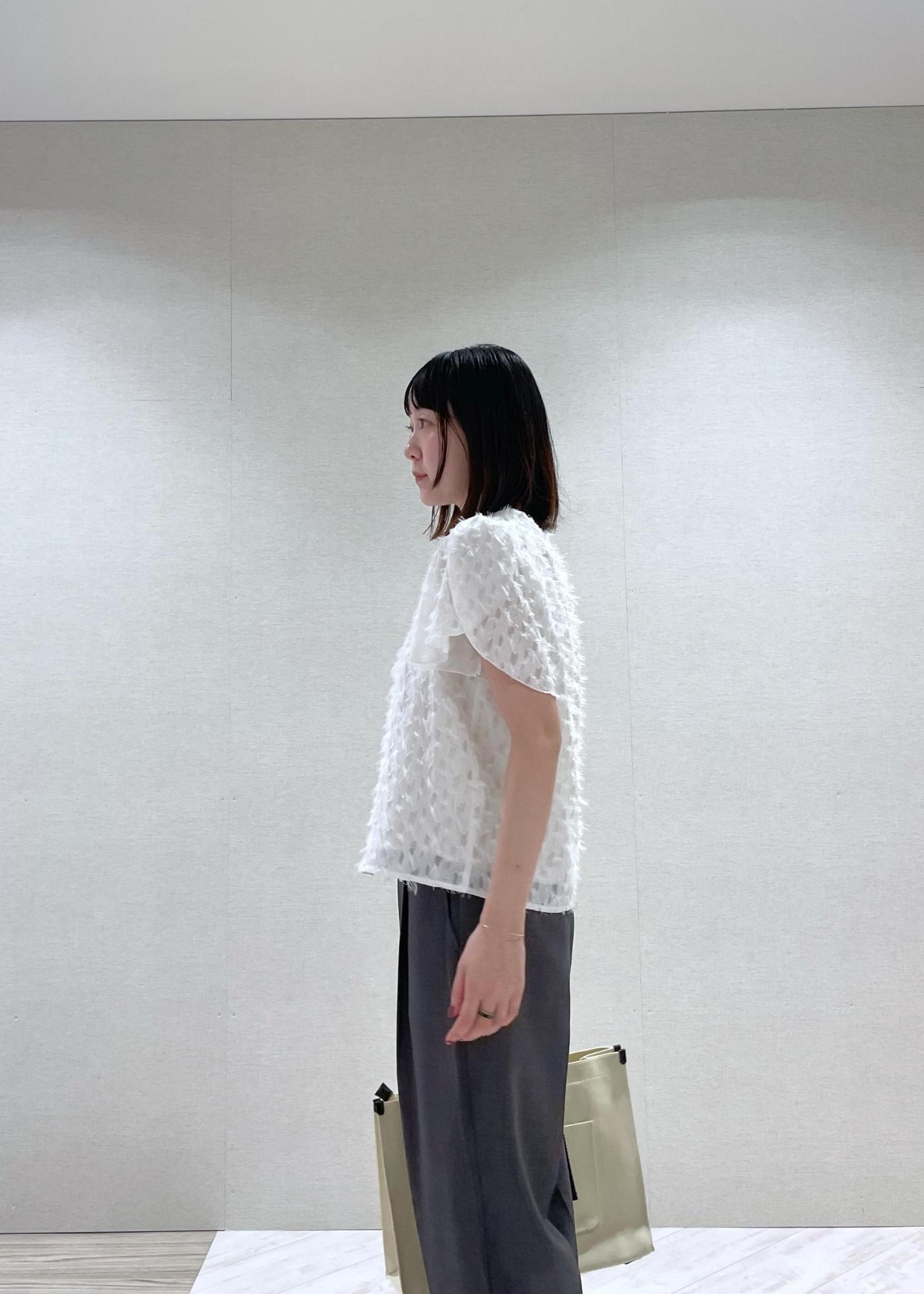 VISチューリップスリーブジャガードスキッパーブラウスホワイト / F¥2,963レビューボディラインは拾わないサイズ感、身頃部分は裏地付き、なので1枚で着用しやすいです◎素材感とチューリップスリーブで着映えもします♡