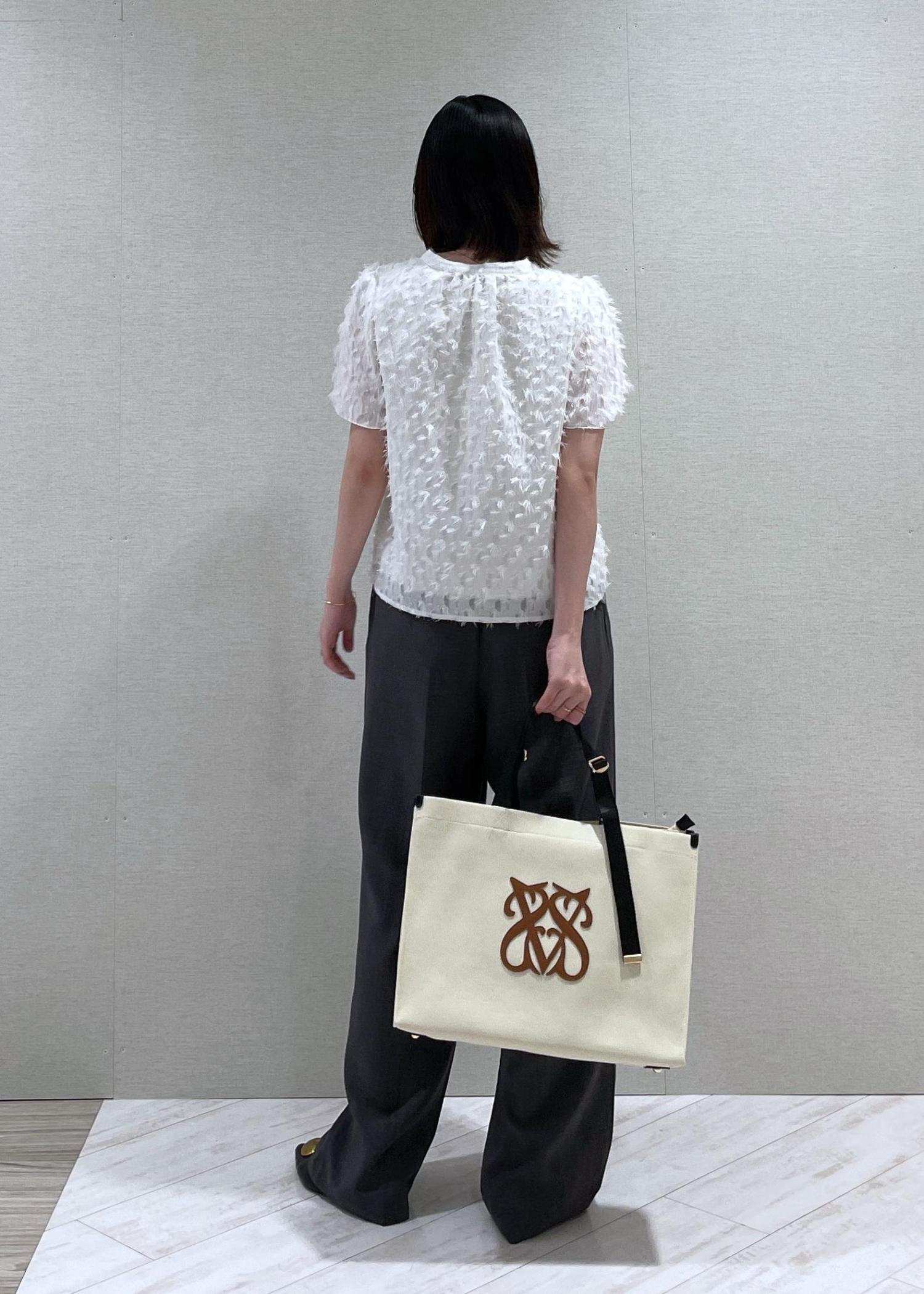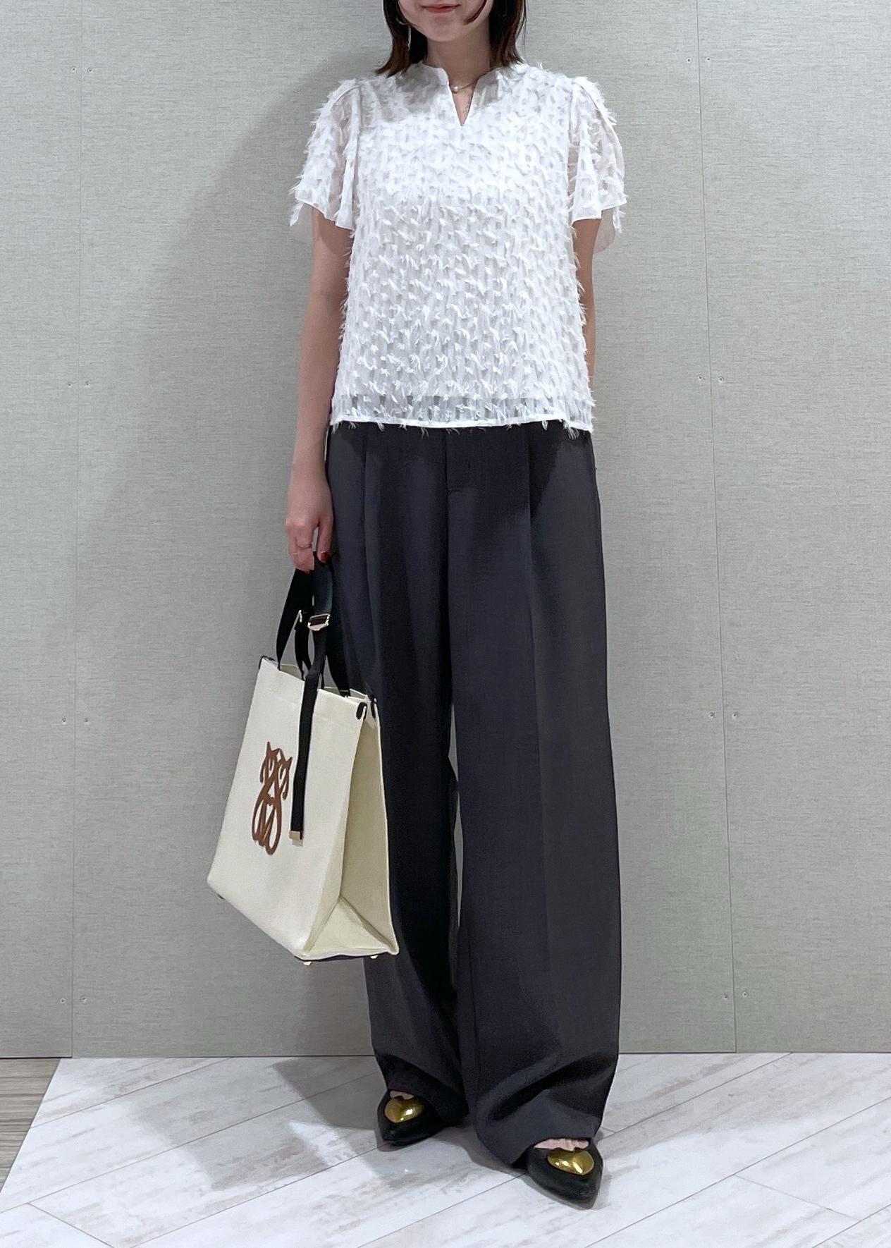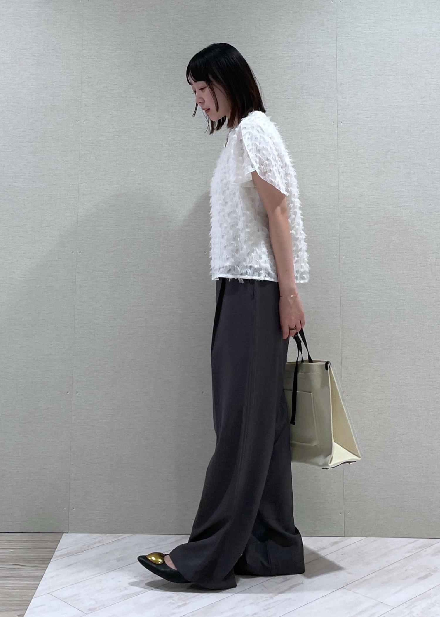 VISチューリップスリーブジャガードスキッパーブラウスホワイト / F¥2,963レビューボディラインは拾わないサイズ感、身頃部分は裏地付き、なので1枚で着用しやすいです◎素材感とチューリップスリーブで着映えもします♡