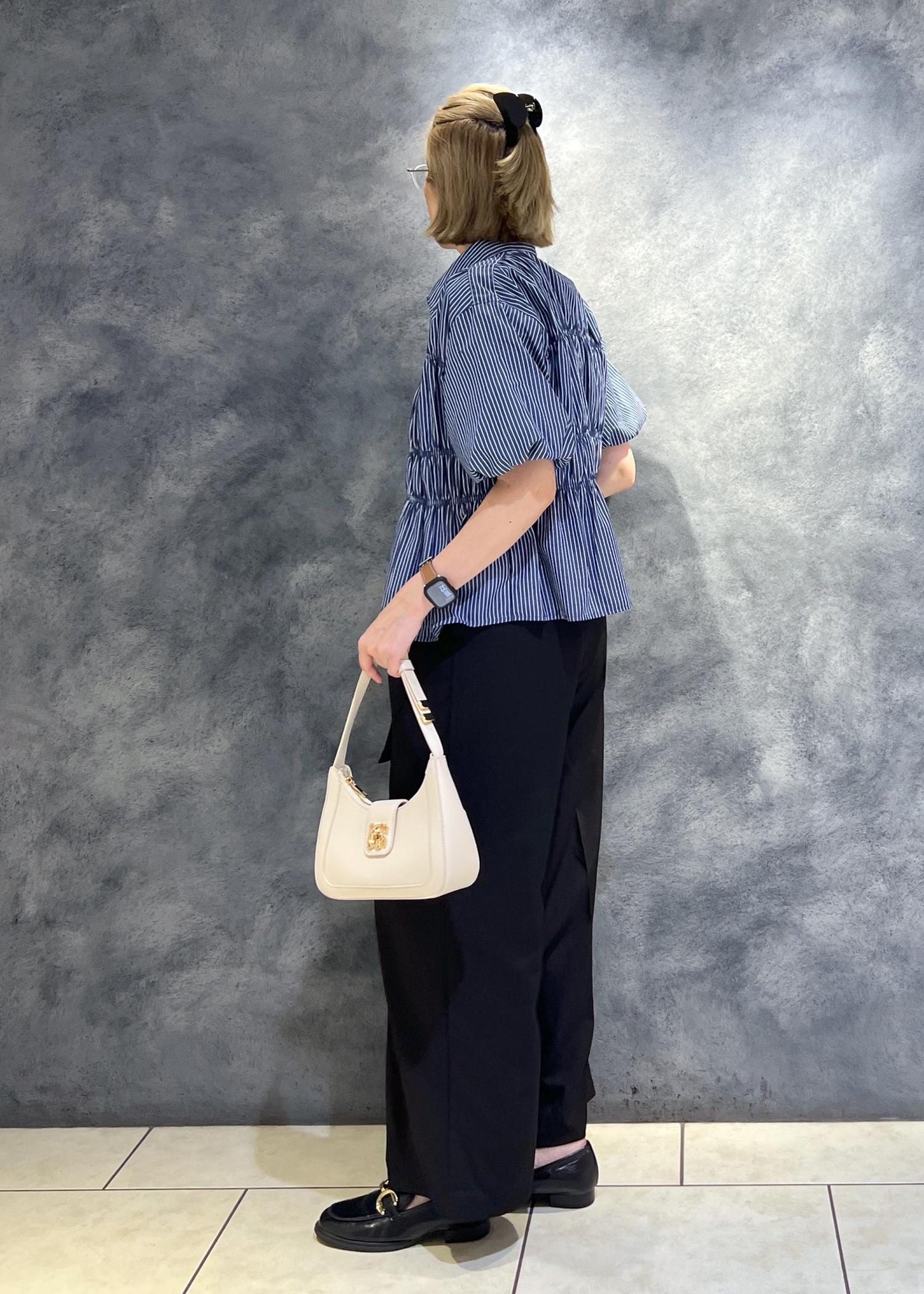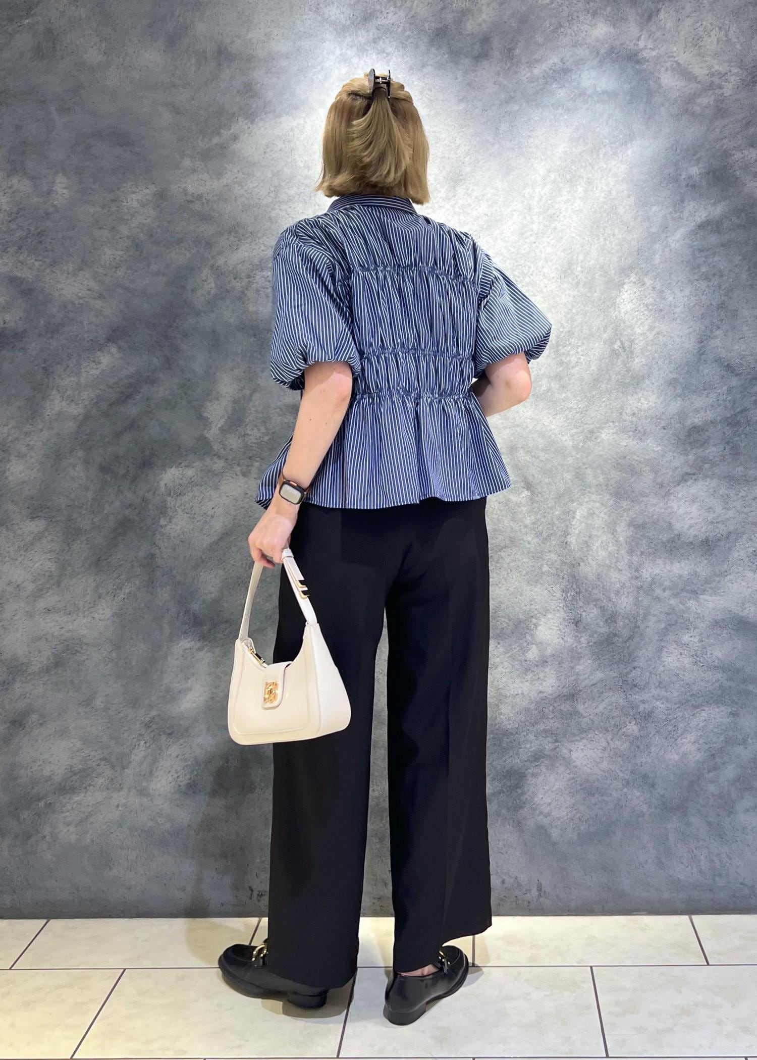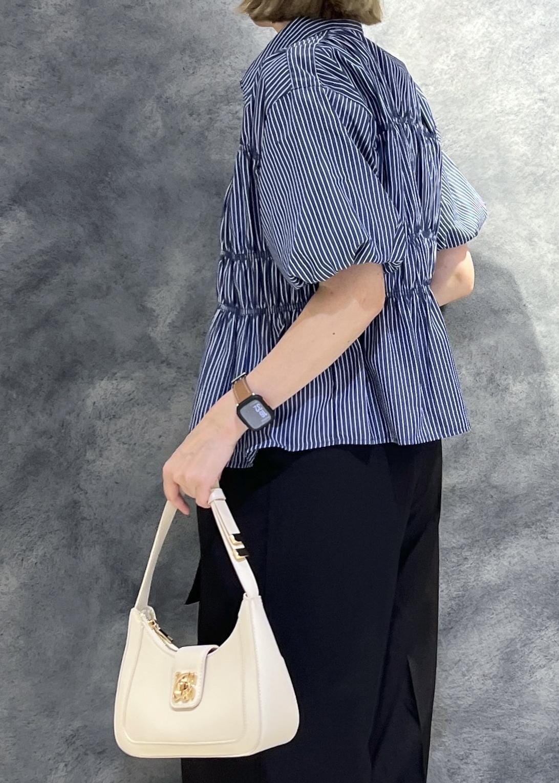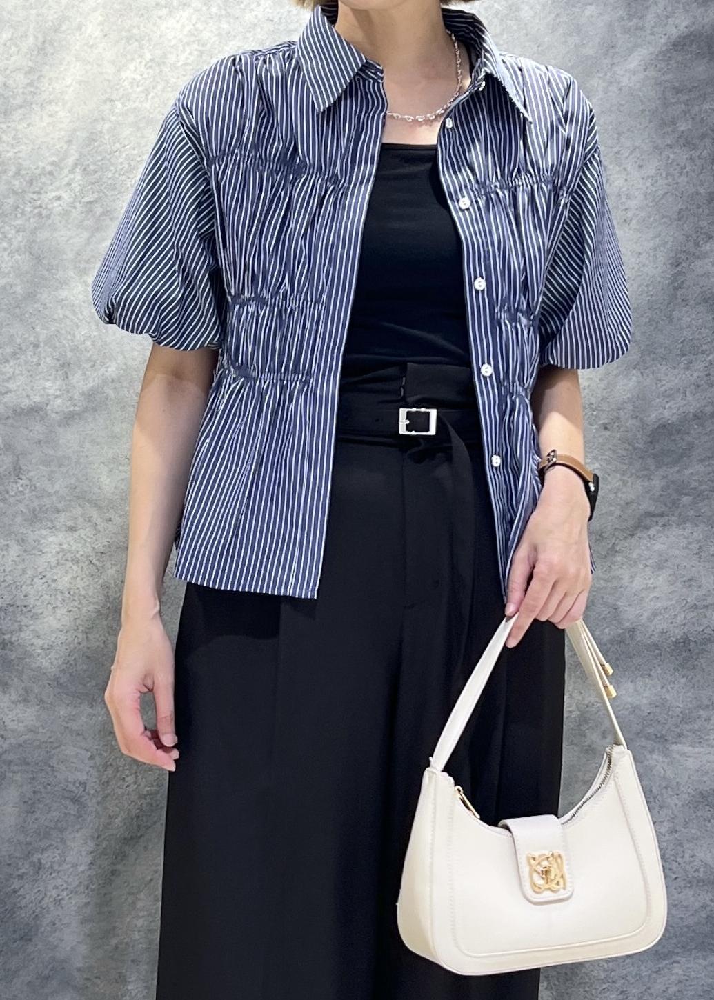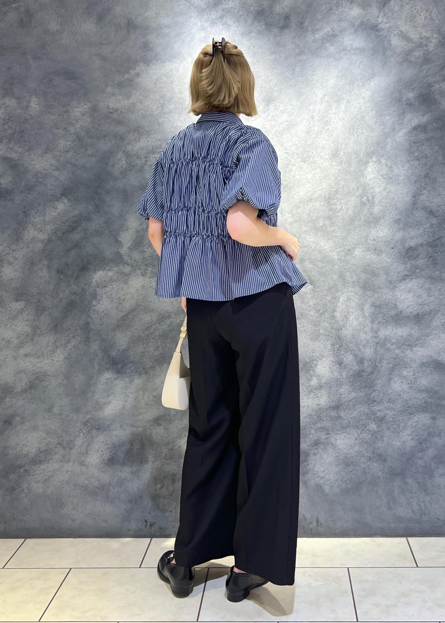 VIS【新色追加】【店頭人気】シャーリングバルーンシャツネイビー系 / F¥5,489レビュー人気のシャーリングブラウスが夏バージョンになって入荷しました!