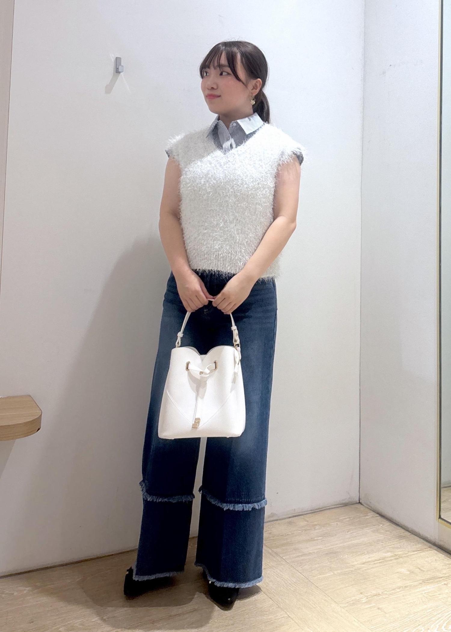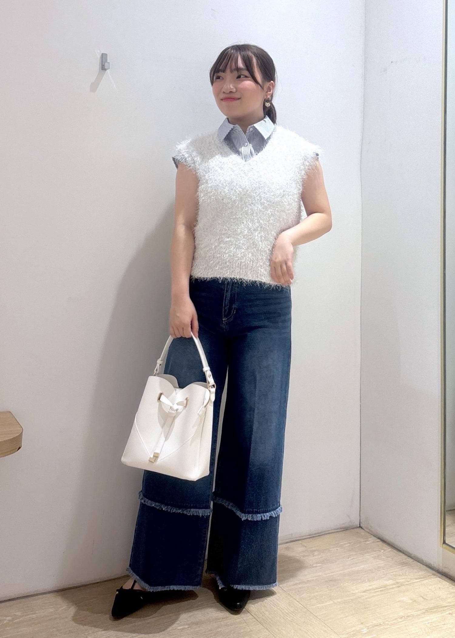 VIS【WEB限定サイズ:MT/着丈が選べる】【洗える】フェザーヤーンニットベストホワイト系 / M¥3,293レビューラメ感がとても華やかなアイテムです!1枚で着たり、レイヤードスタイルで着たりと着回ししやすいです。