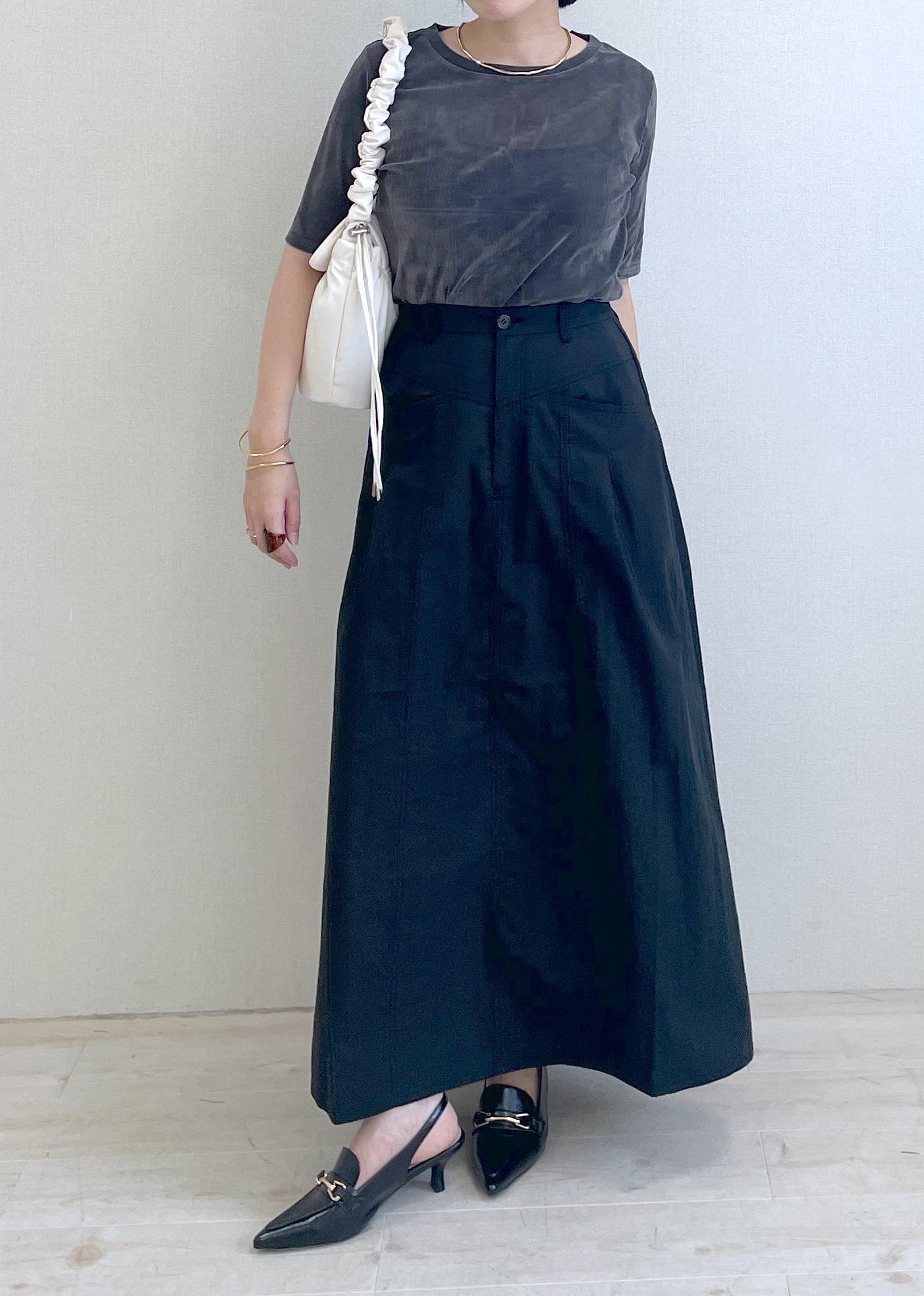 長めの丈感は大人っぽく、おしゃれ見えする長さです。