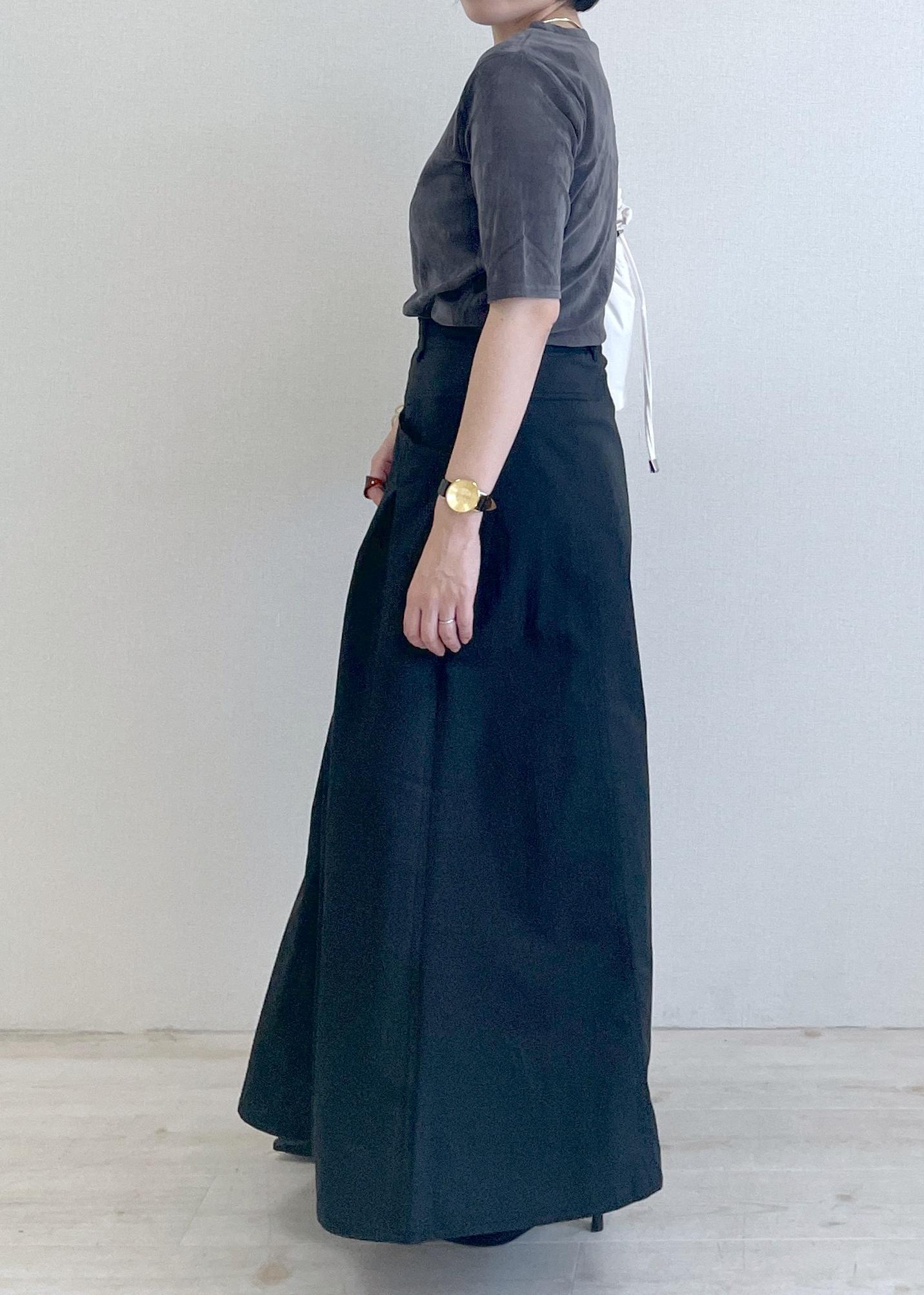 フリーサイズで、ウエストはゆとりがありますが、ベルトループがついているので華奢な方でも調節してお召しいただけます◎