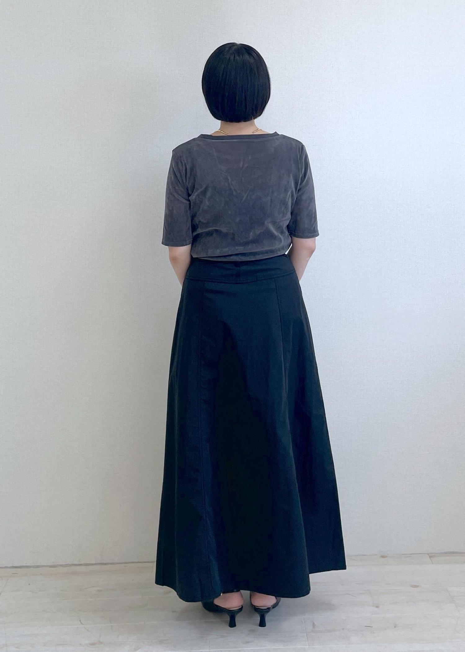 ベロア素材ですが、薄手の素材でシアー感があり、気温の高い日でも秋のニュアンスを取り入れられます◎