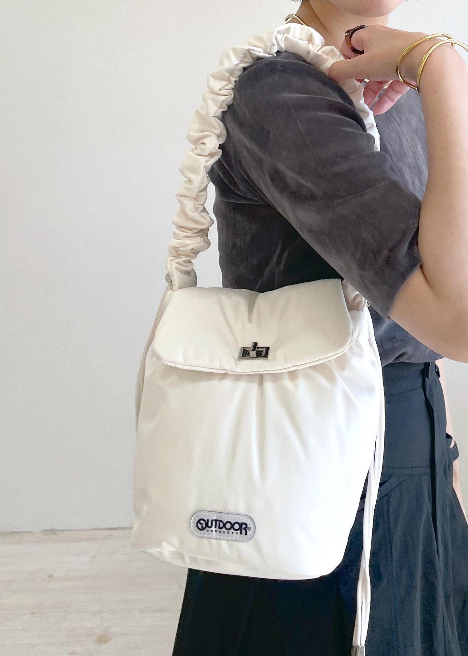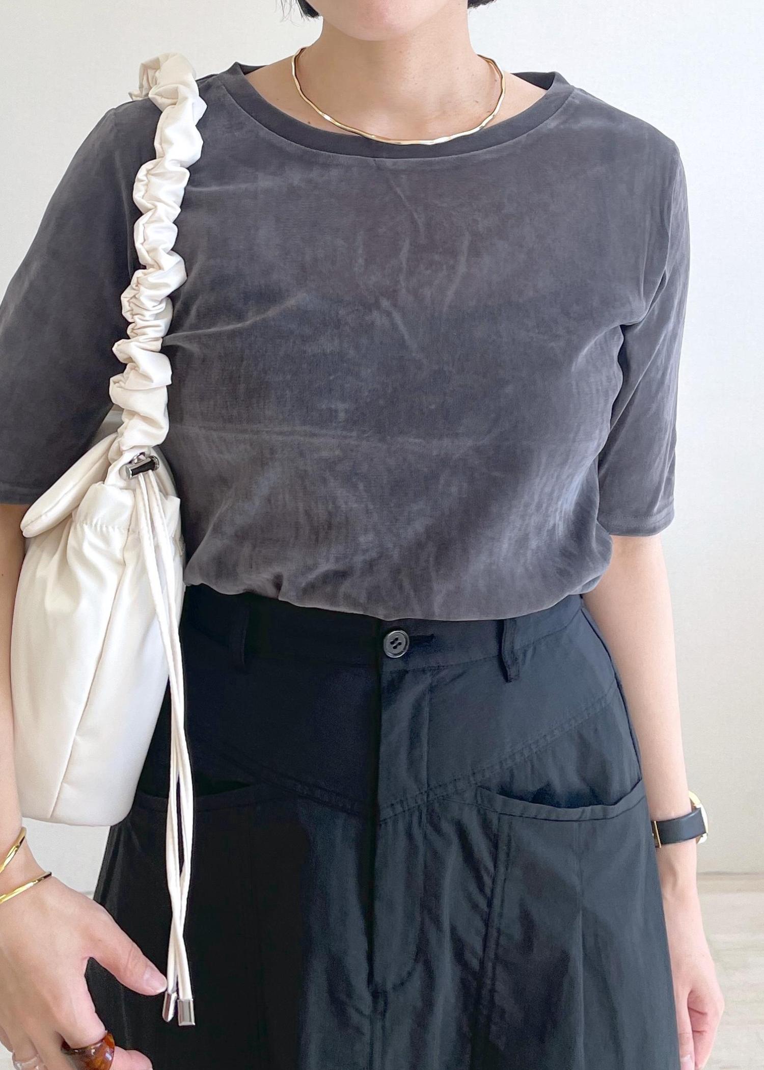 ドロスト仕様のショルダーは、絞り方で印象が変わり、お好みの長さでお使いいただけます。