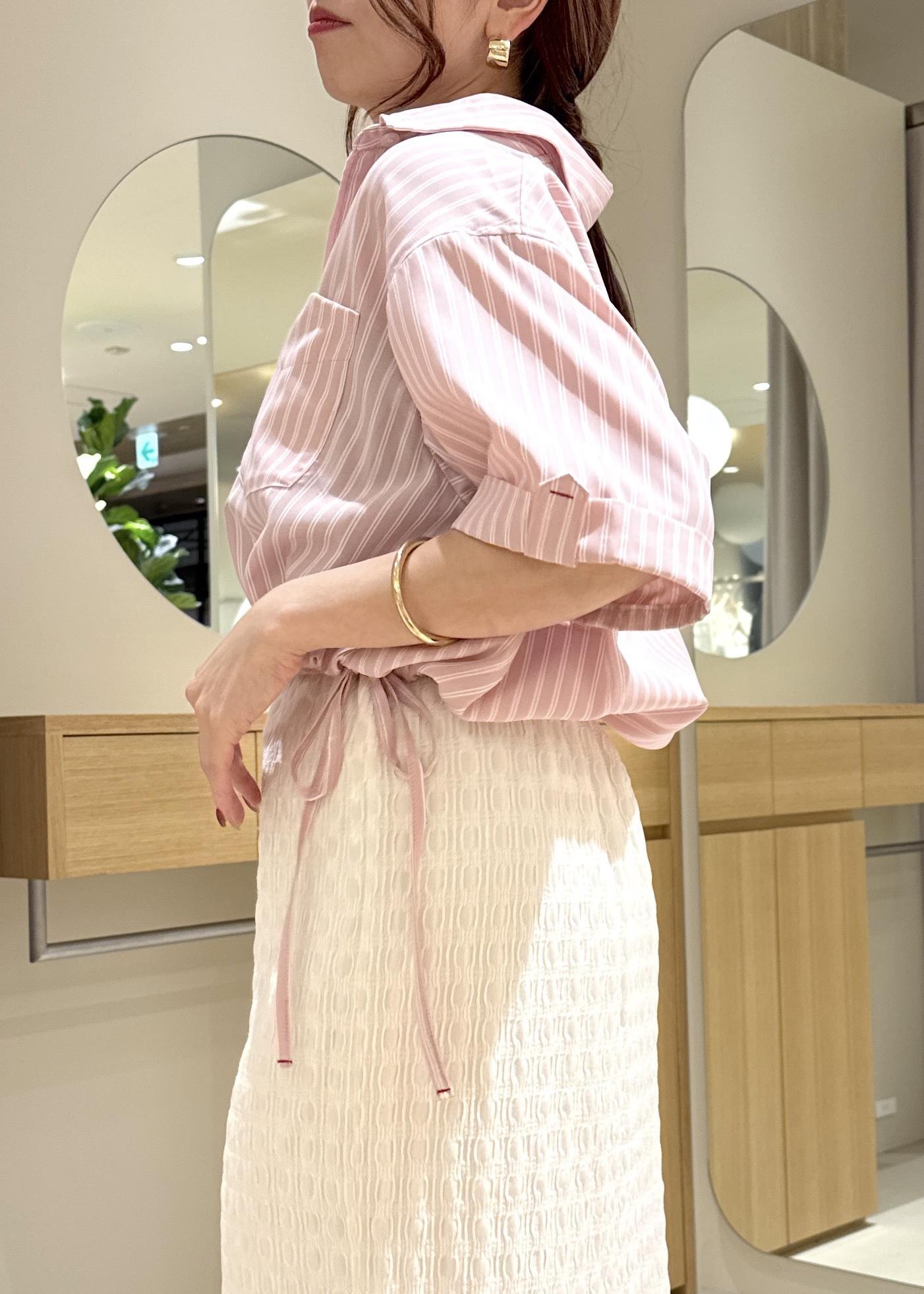 カラーシャツで華やか‼︎大人フェミニンコーデ☺︎♡