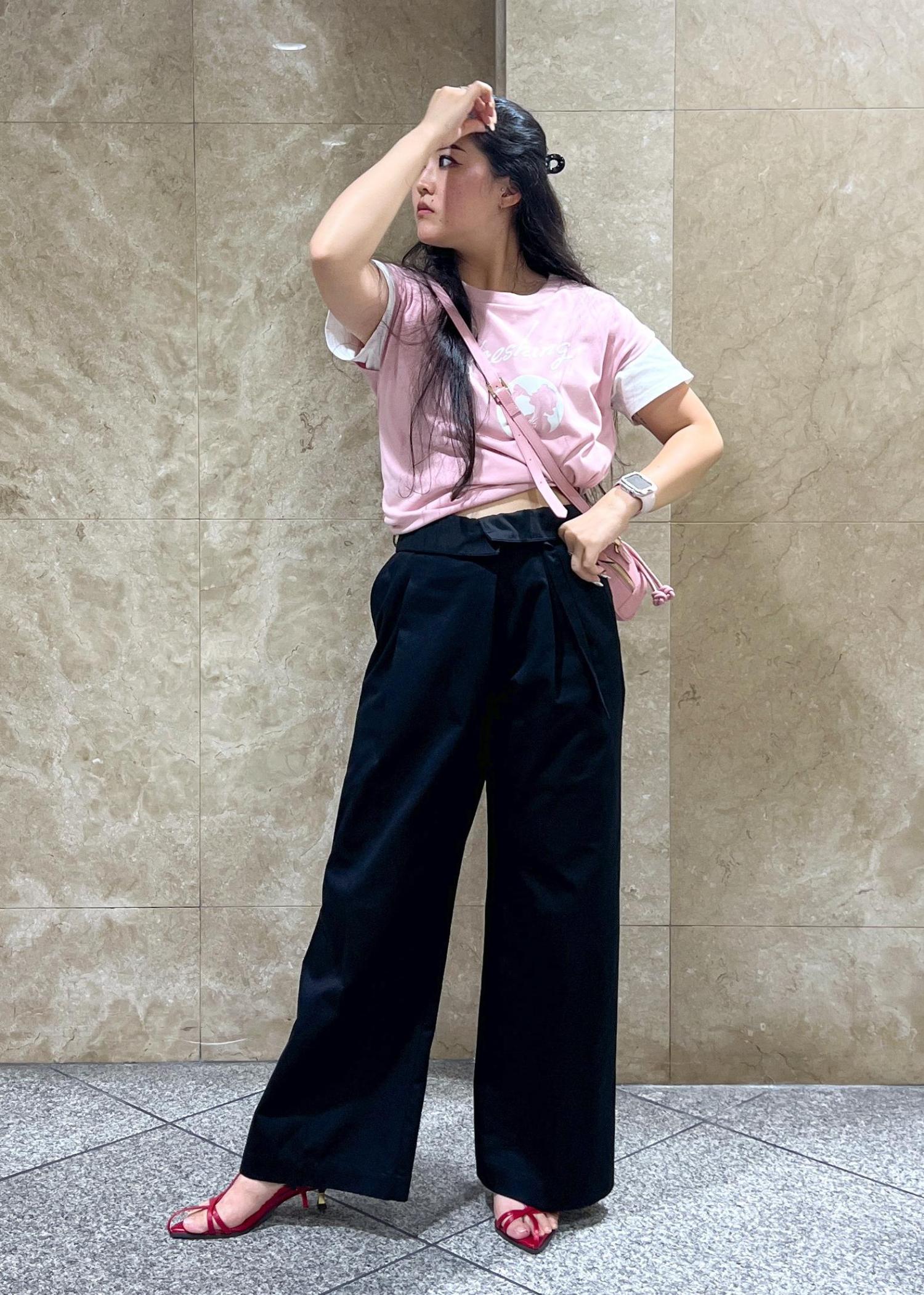 VIS【Coca-Cola】VIS別注ロゴプリントフレンチTシャツピンク / F¥3,850レビューコカ・コーラのフレンチスリーブタイプで、丈感もちょうどいいです◎私は二の腕を隠したくて、重ね着しましたが、これもちょっと可愛いのでカラー物を入れても(๑♡∀♡๑)