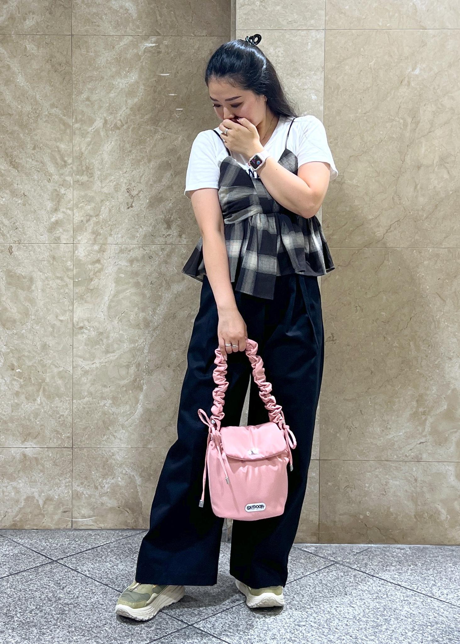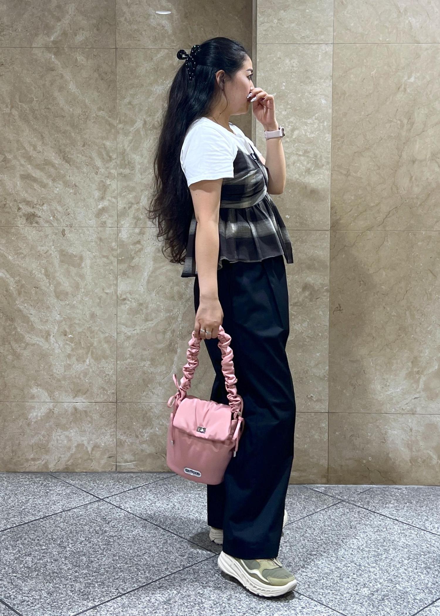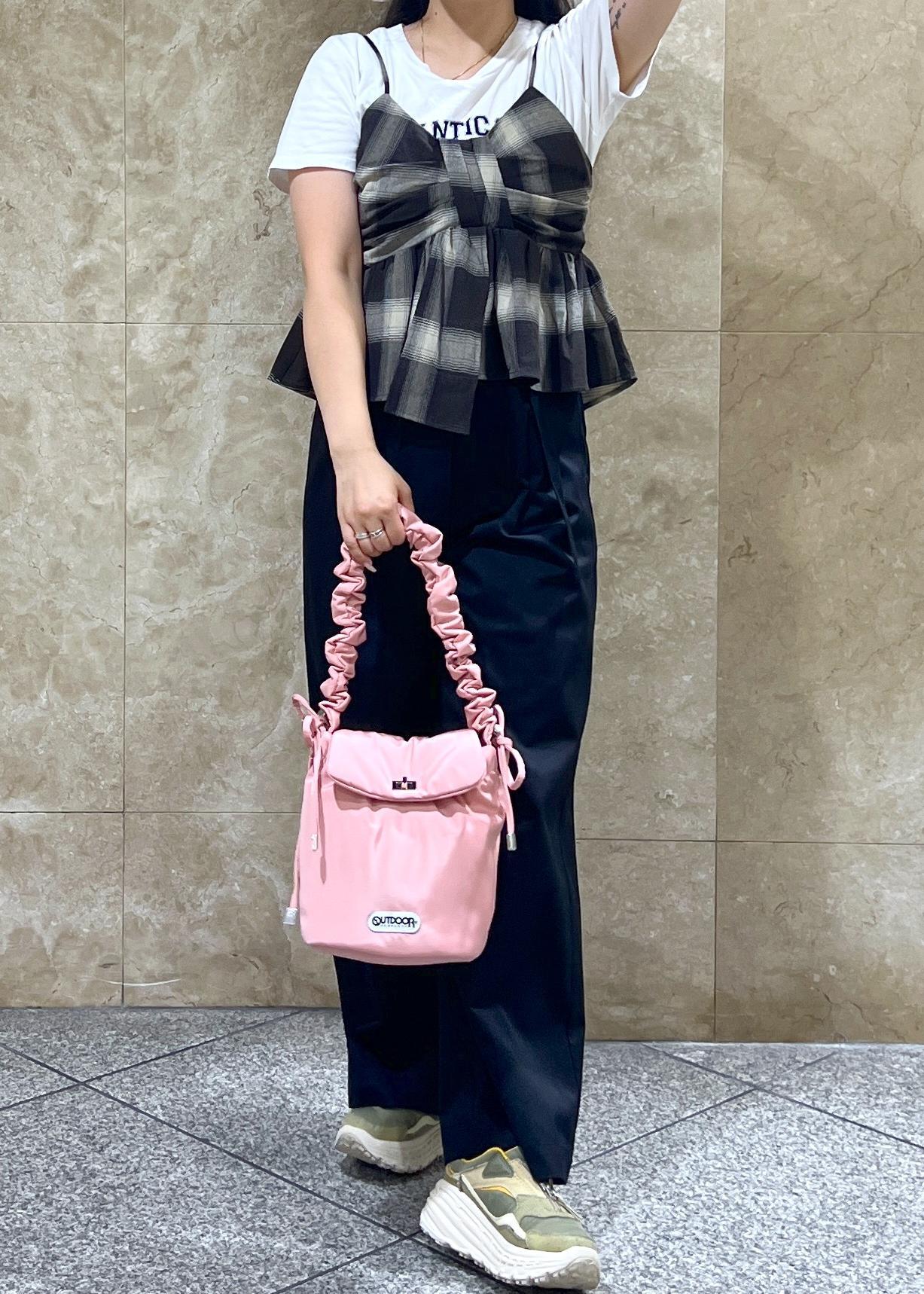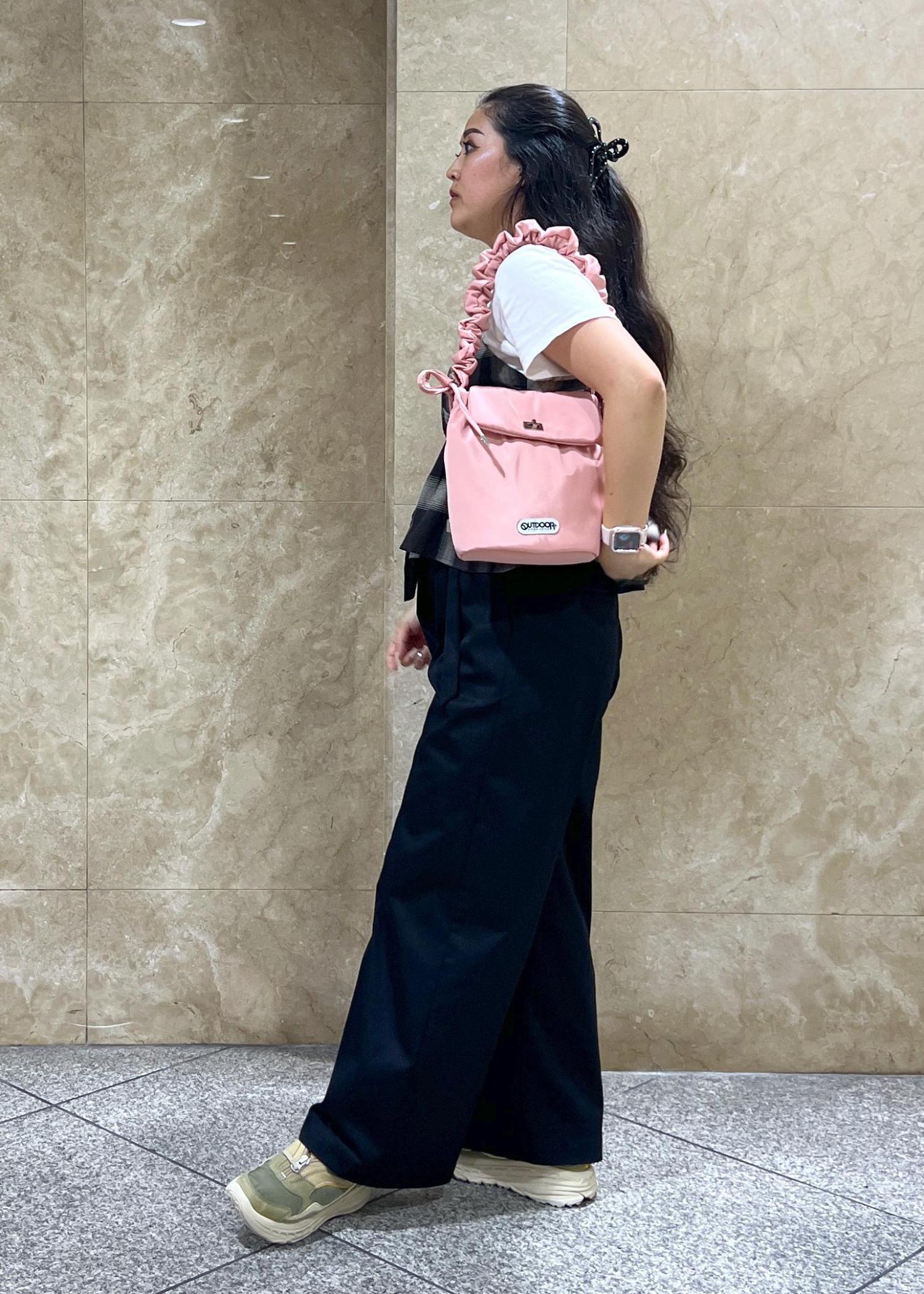 NEW!VISWEB限定追加【OUTDOOR PRODUCTS】VIS別注ドロストミニショルダーバッグピンク系 / F¥6,930レビュー横のドロストを絞ったり伸ばしたりすると、肩の部分も伸びます~!!!可愛い~