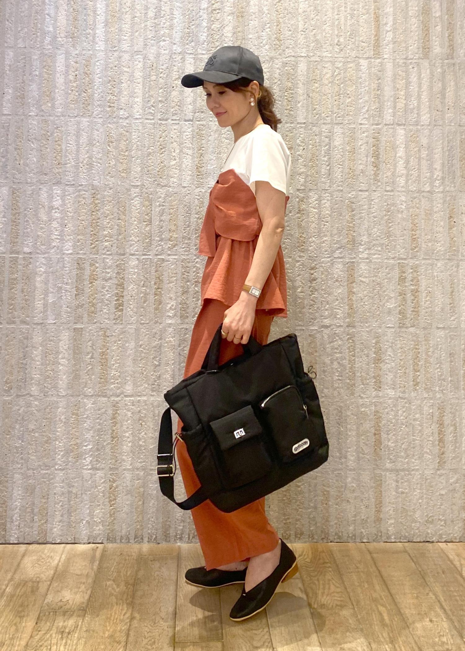 サイドやフロントポケットがあり、大容量でマザーズバッグにもオススメ♪ -