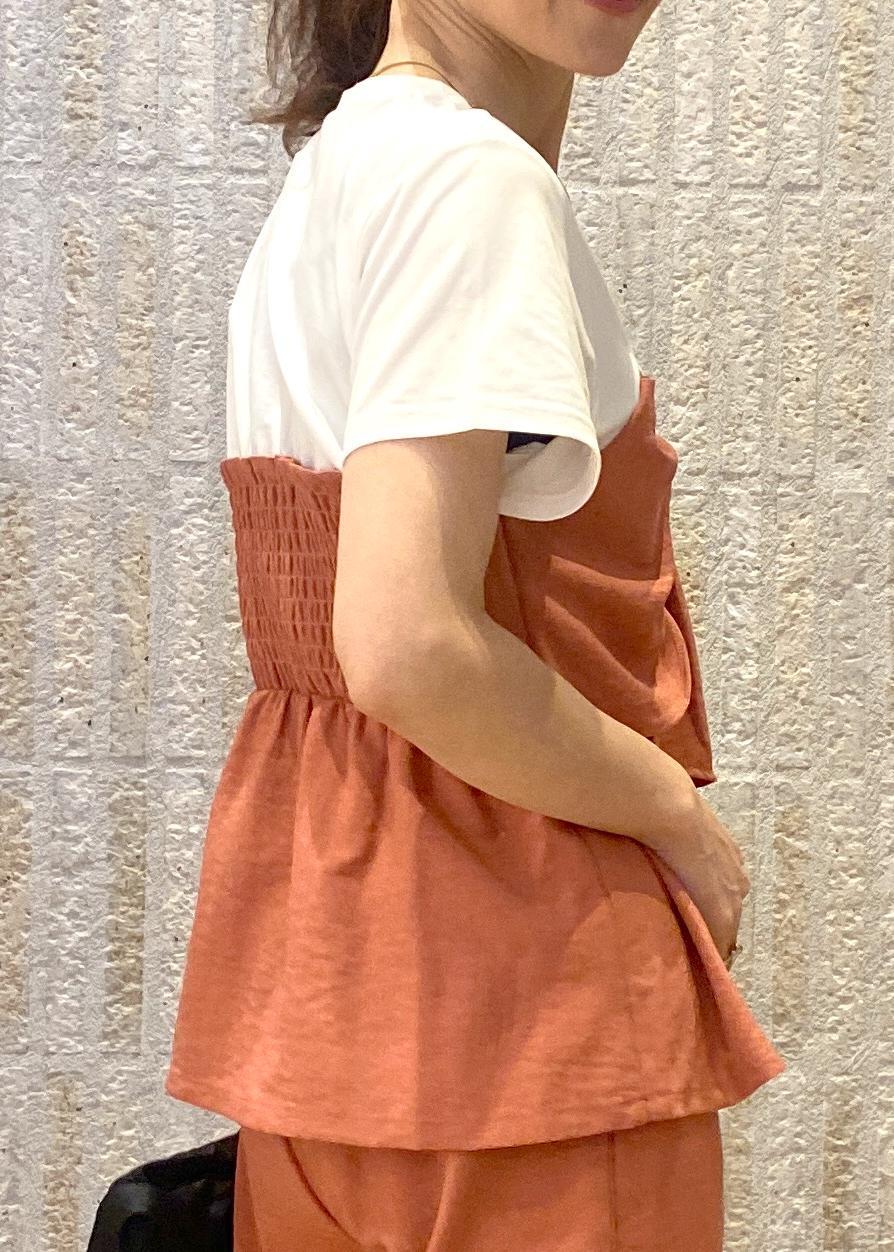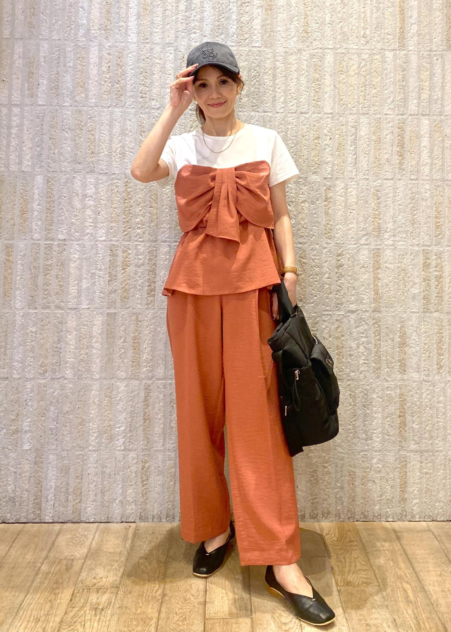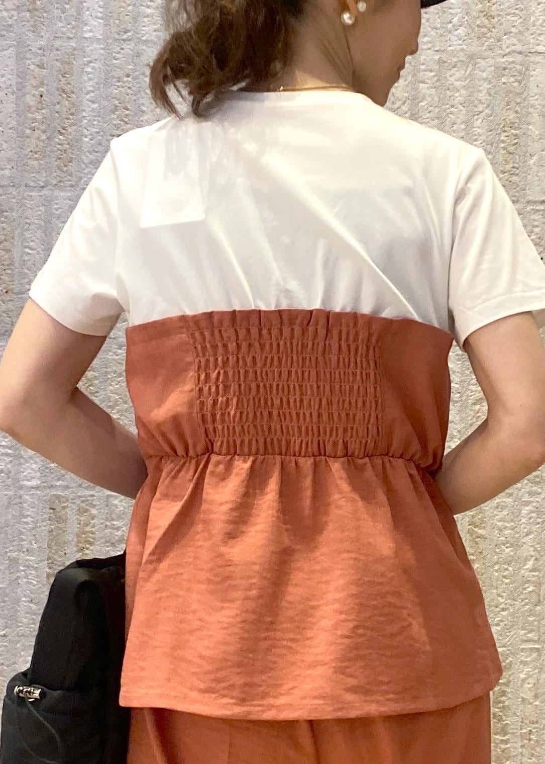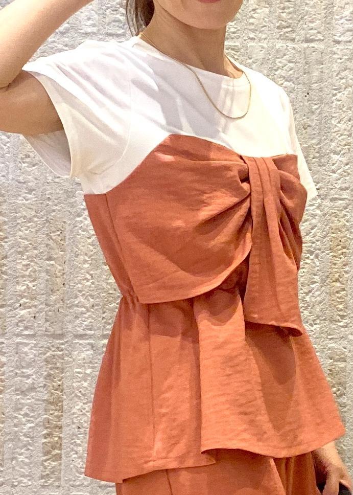VIS【新色追加】【美easy】ねじりリボンTシャツドッキングプルオーバー【接触冷感/洗える】オレンジ系 / F¥5,489レビュー美easyシリーズセットアップ対応トップス☆