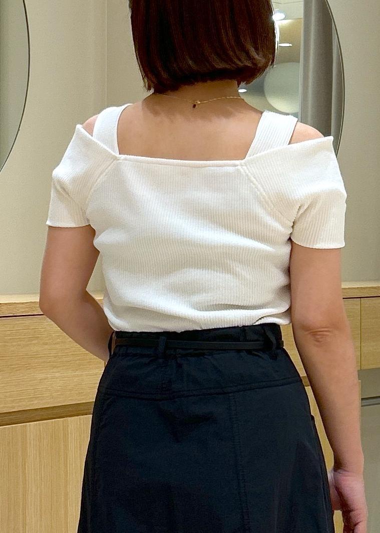 オフショルダーが苦手な方でも挑戦しやすいデザインです。