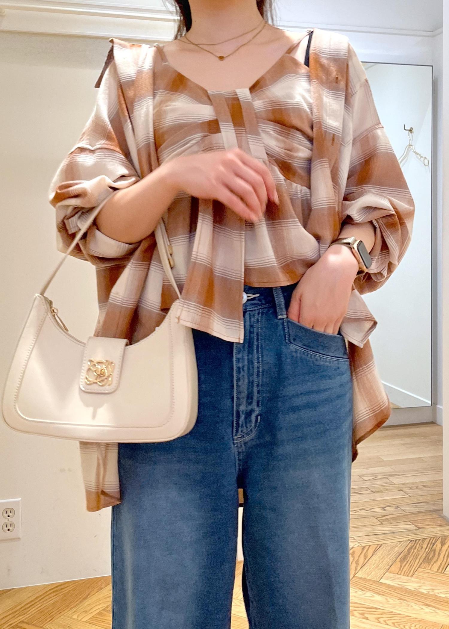 ハイウエストなのでワイドパンツなどボリュームあるものも合わせやすいです。 -