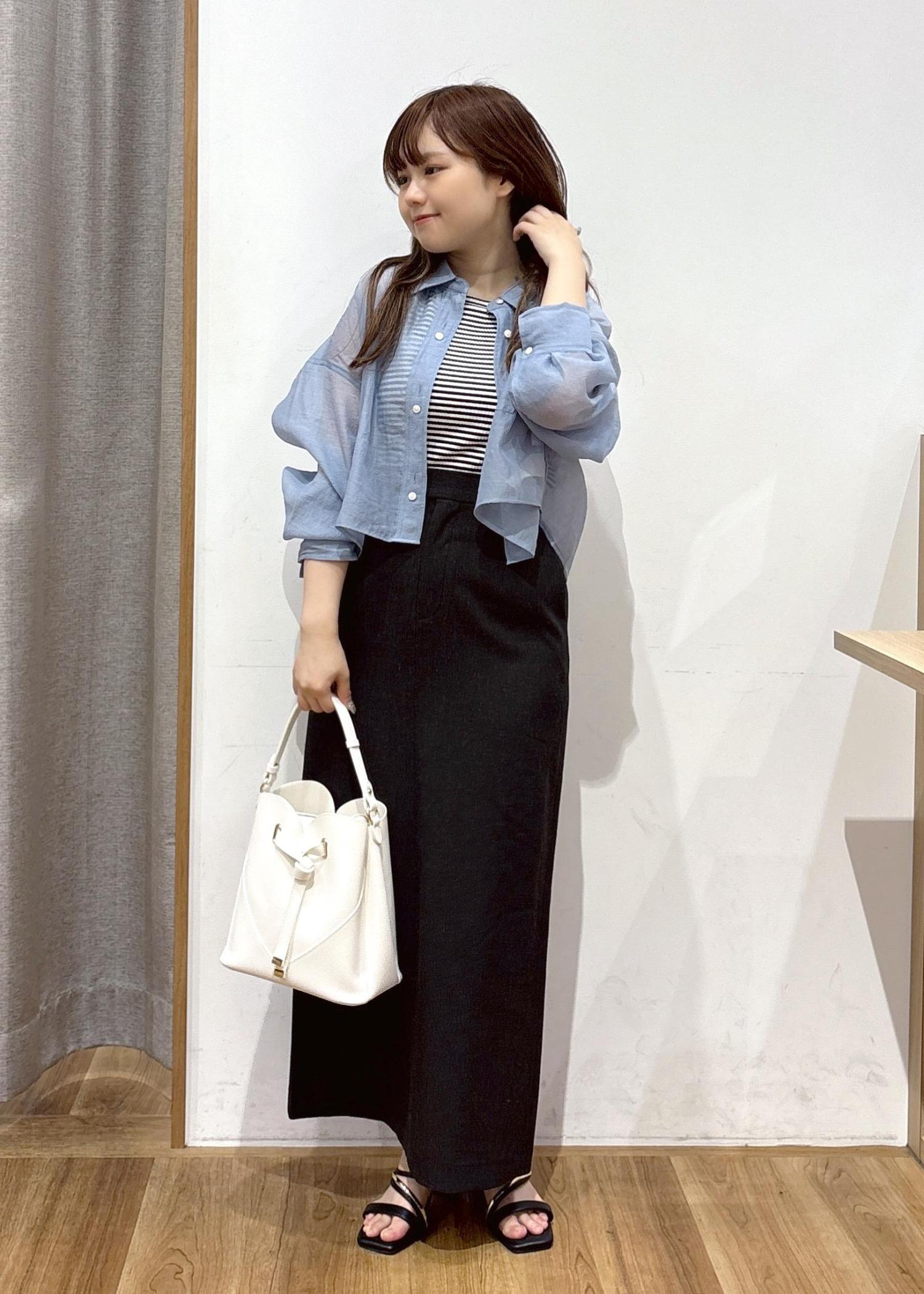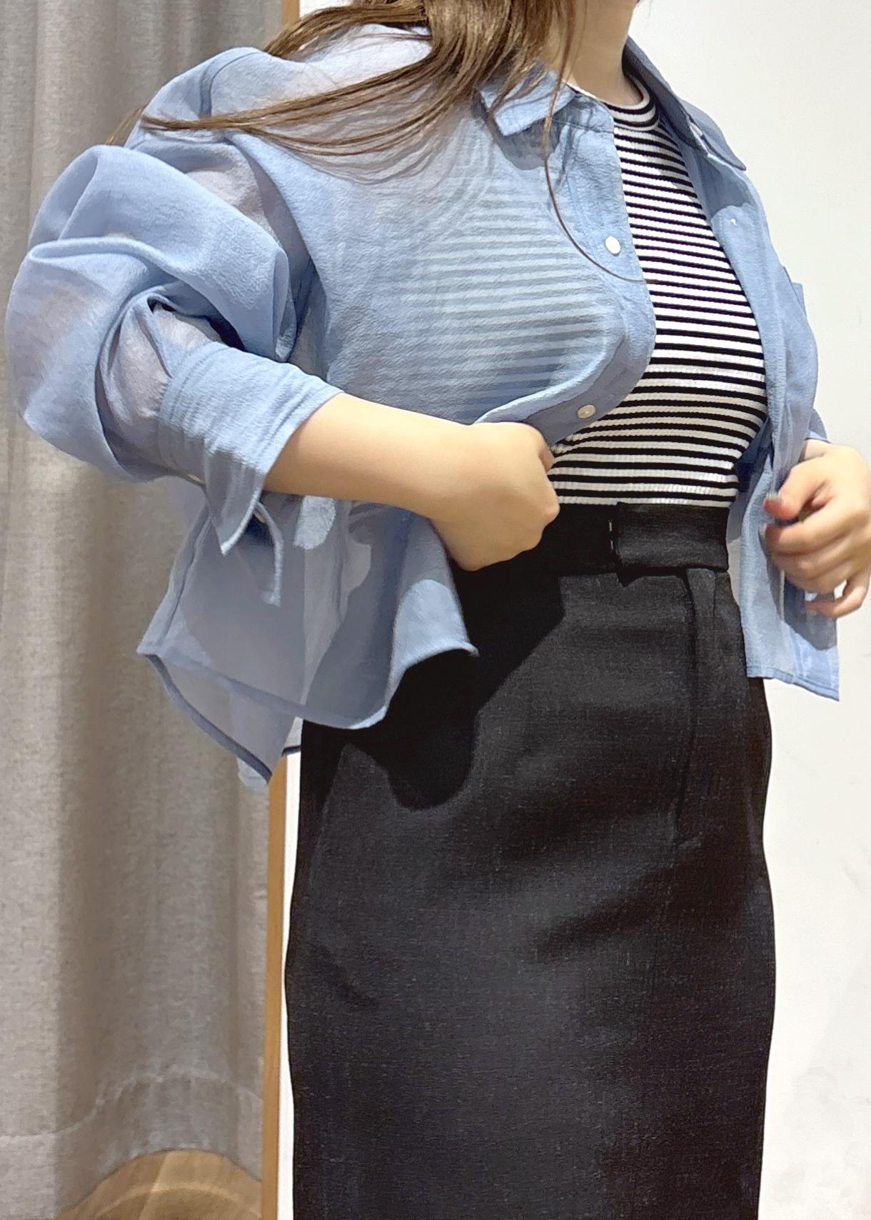 使い回しの効くシアーシャツに、ワンポイントとしてボーダーのタンクトップをあわせてみました!