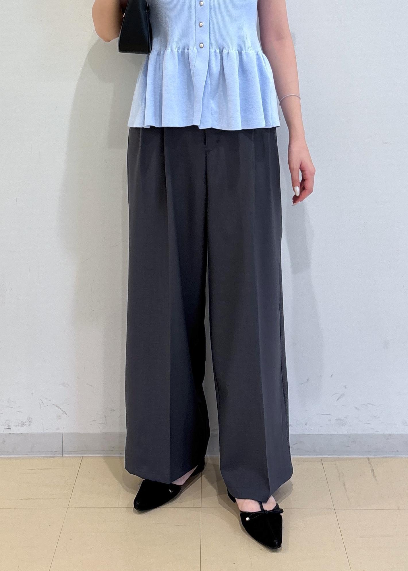 ハイウエストなので足が長く見えてスタイルアップが叶います!ワイドシルエットなので体型カバーができ、さらっとした素材感で楽に着用できました。 -