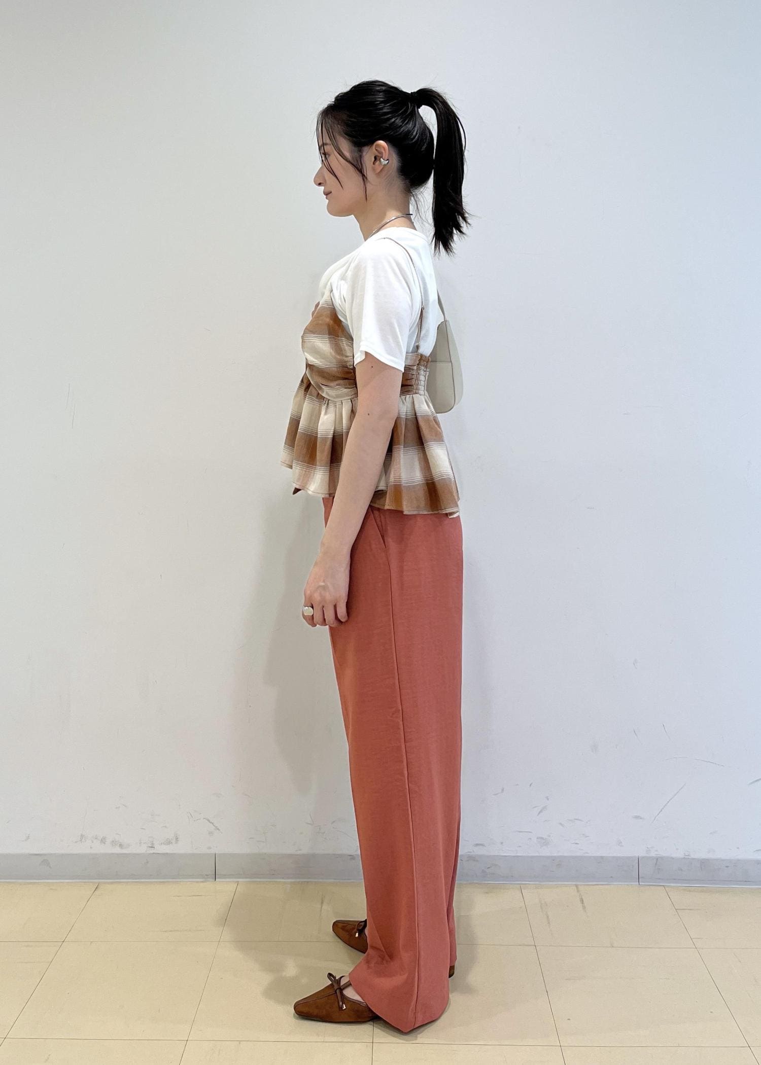 ウエストはだいぶゆとりがありましたが、ウエスト両サイドのボタンで調整できるので、問題なく履けました!