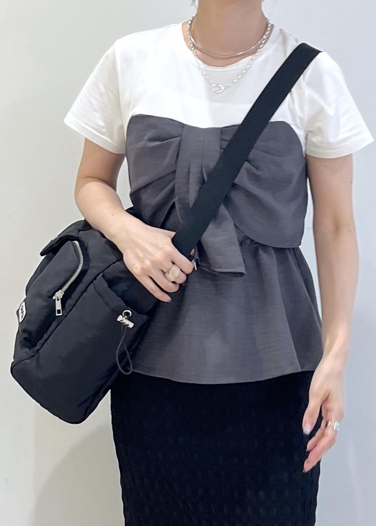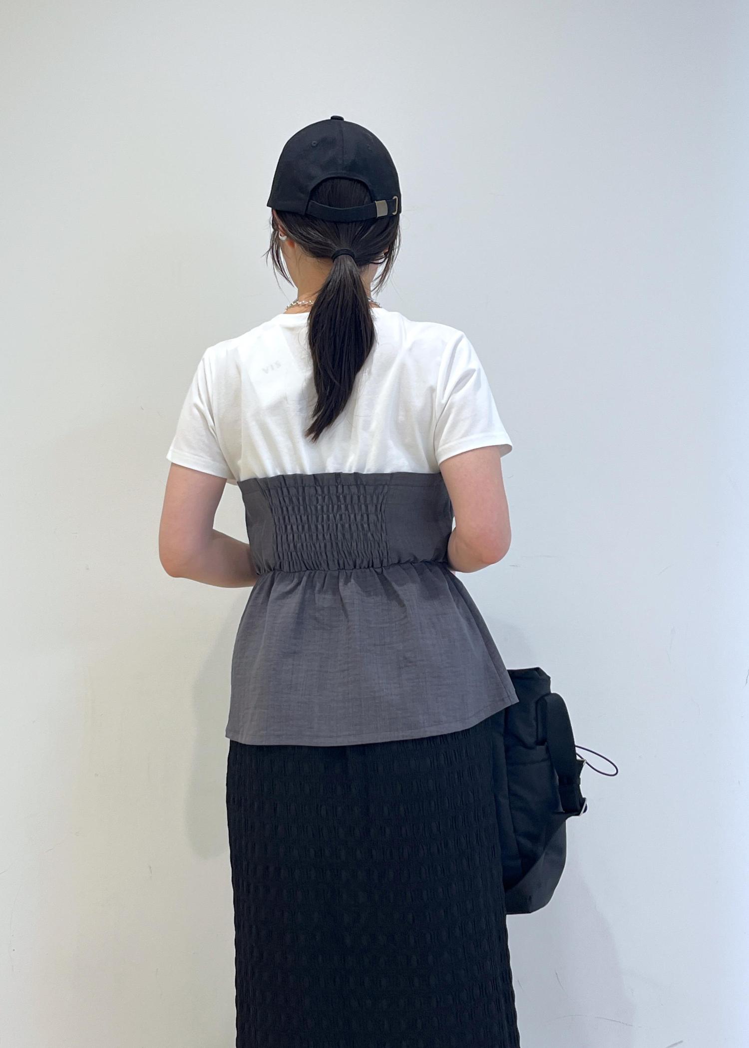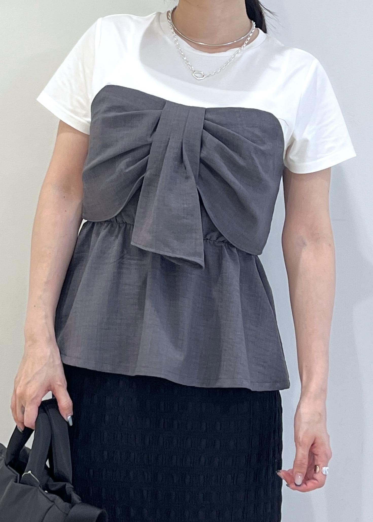 VIS【新色追加】【美easy】ねじりリボンTシャツドッキングプルオーバー【接触冷感/洗える】チャコール / F¥5,489レビュー身長158㎝でFサイズ着用。