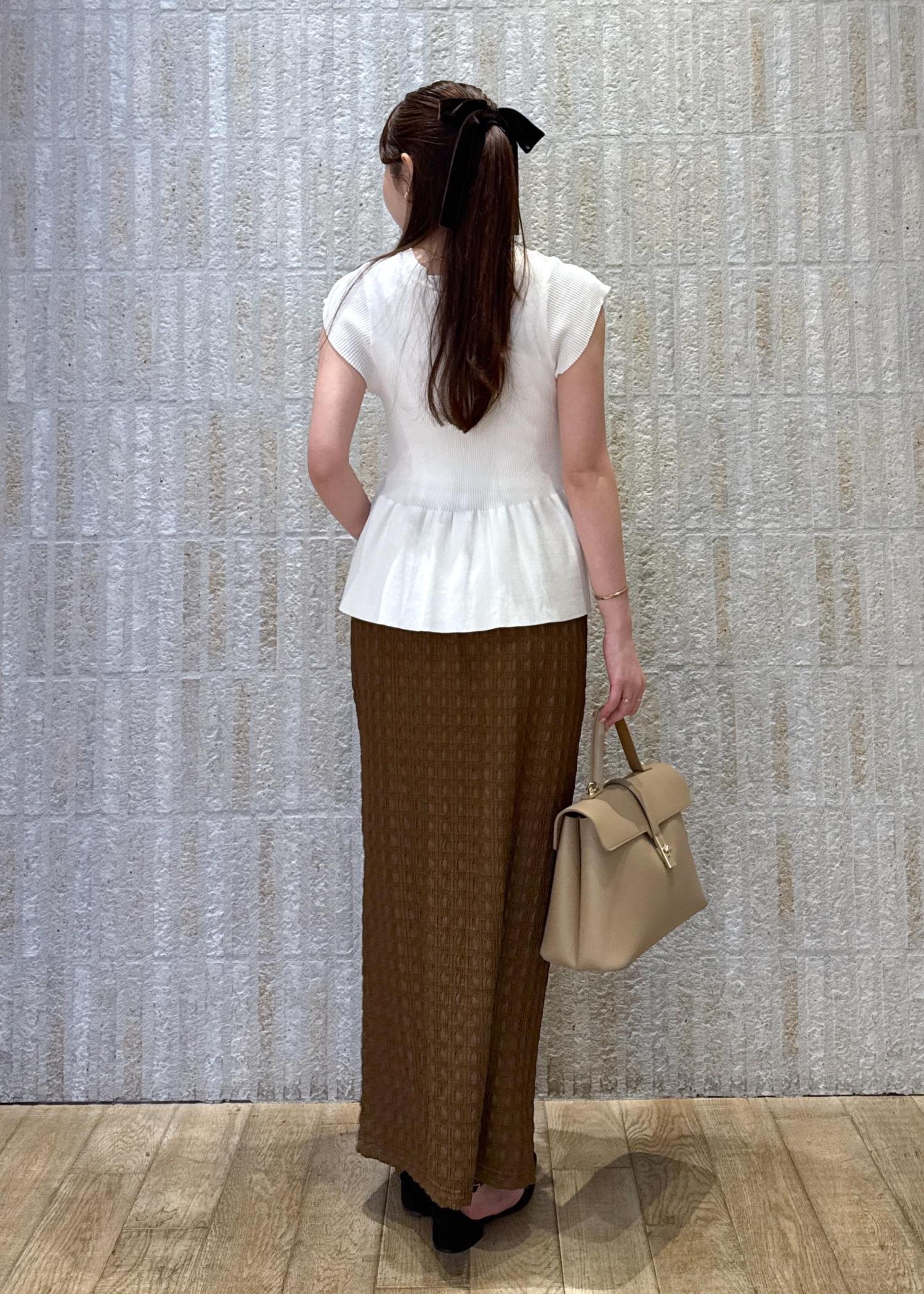 アウトレットVIS【新色追加】【接触冷感】膨れジャガードナロースカートブラウン / F¥3,293レビューウエストがゴムで太もも周りも伸びが良いスカートです!