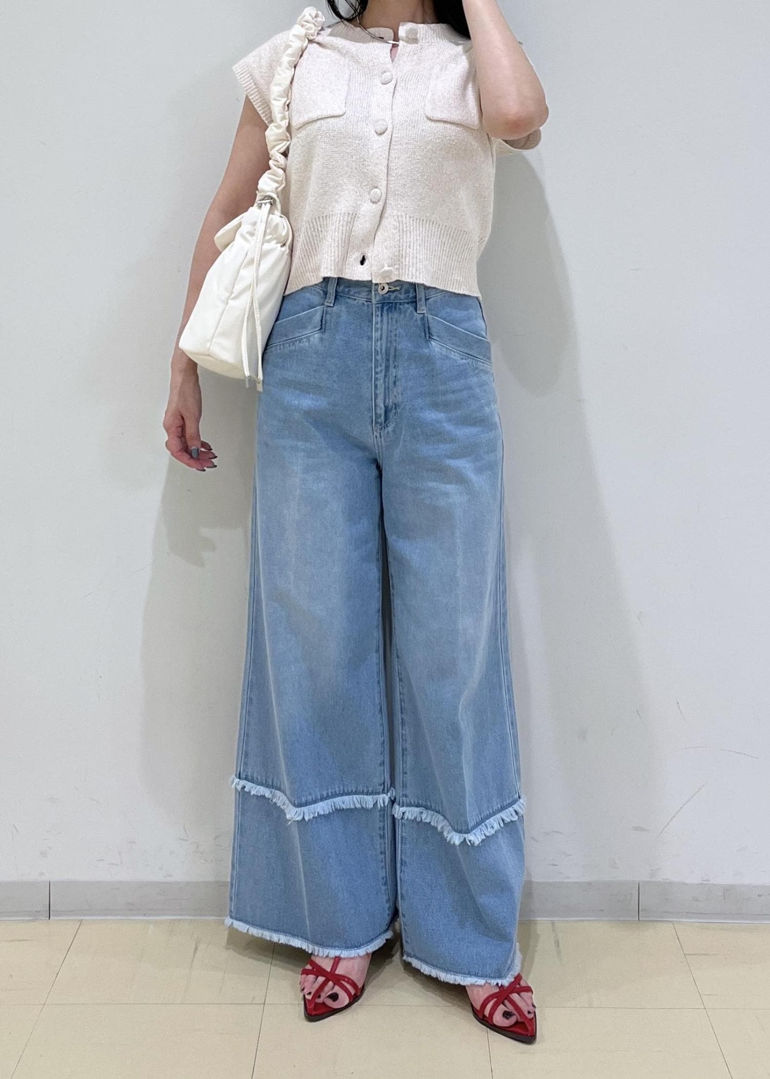 VISフリンジフレアデニムサックス / M¥4,395レビュー158㎝でMサイズ着用。