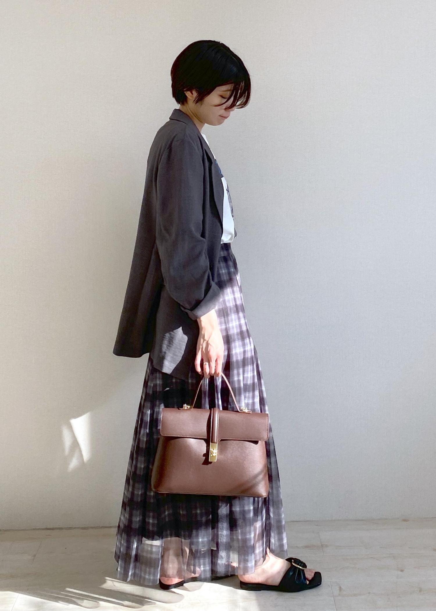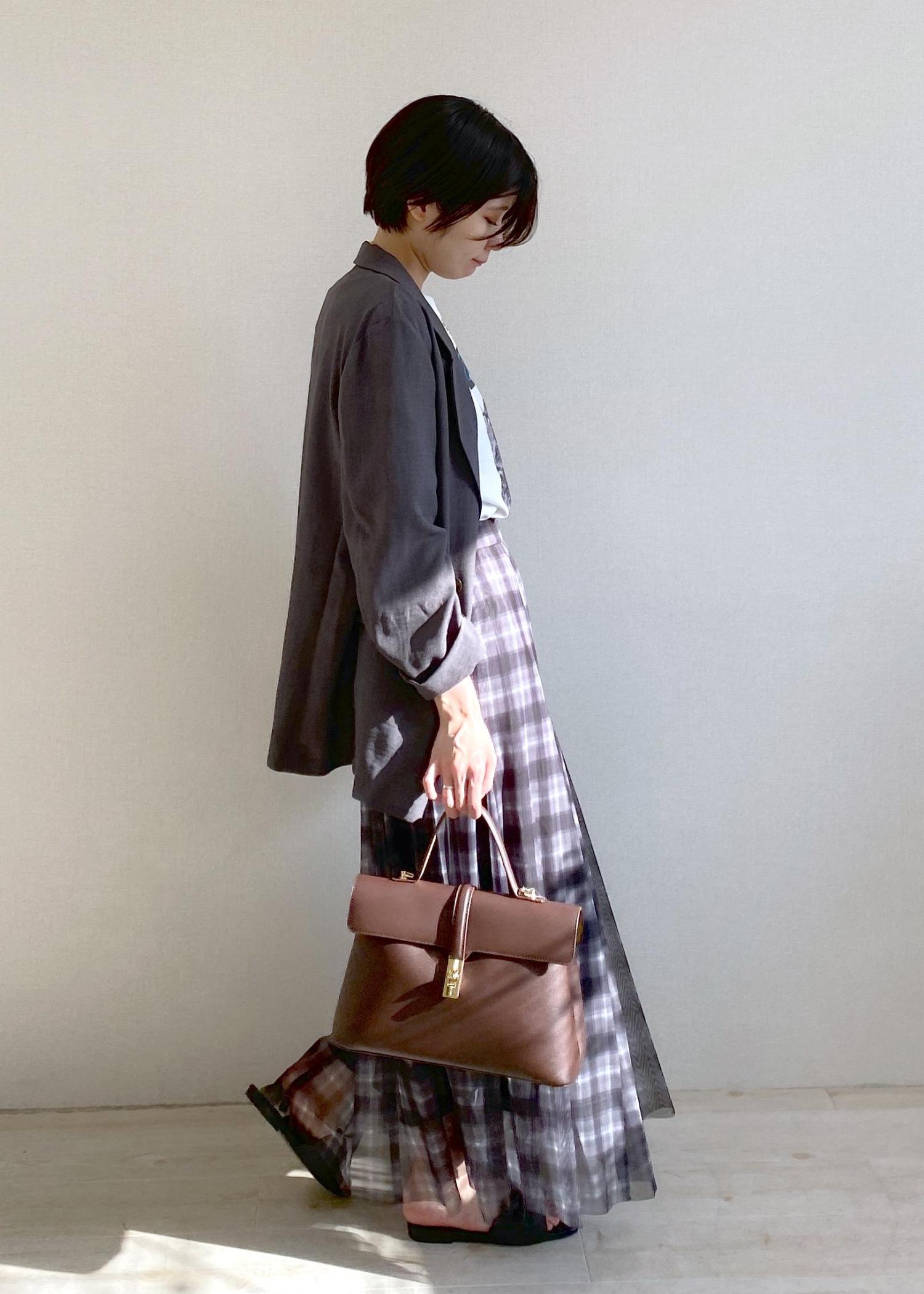 VIS【洗える】チュールプリントチェックスカートブラック系 / F¥4,612レビュー柔らかい肌触りで秋っぽいデザインですが夏の時期でも涼しく着れます。マシンウォッシャブルでお手入れが楽な点が嬉しいです。