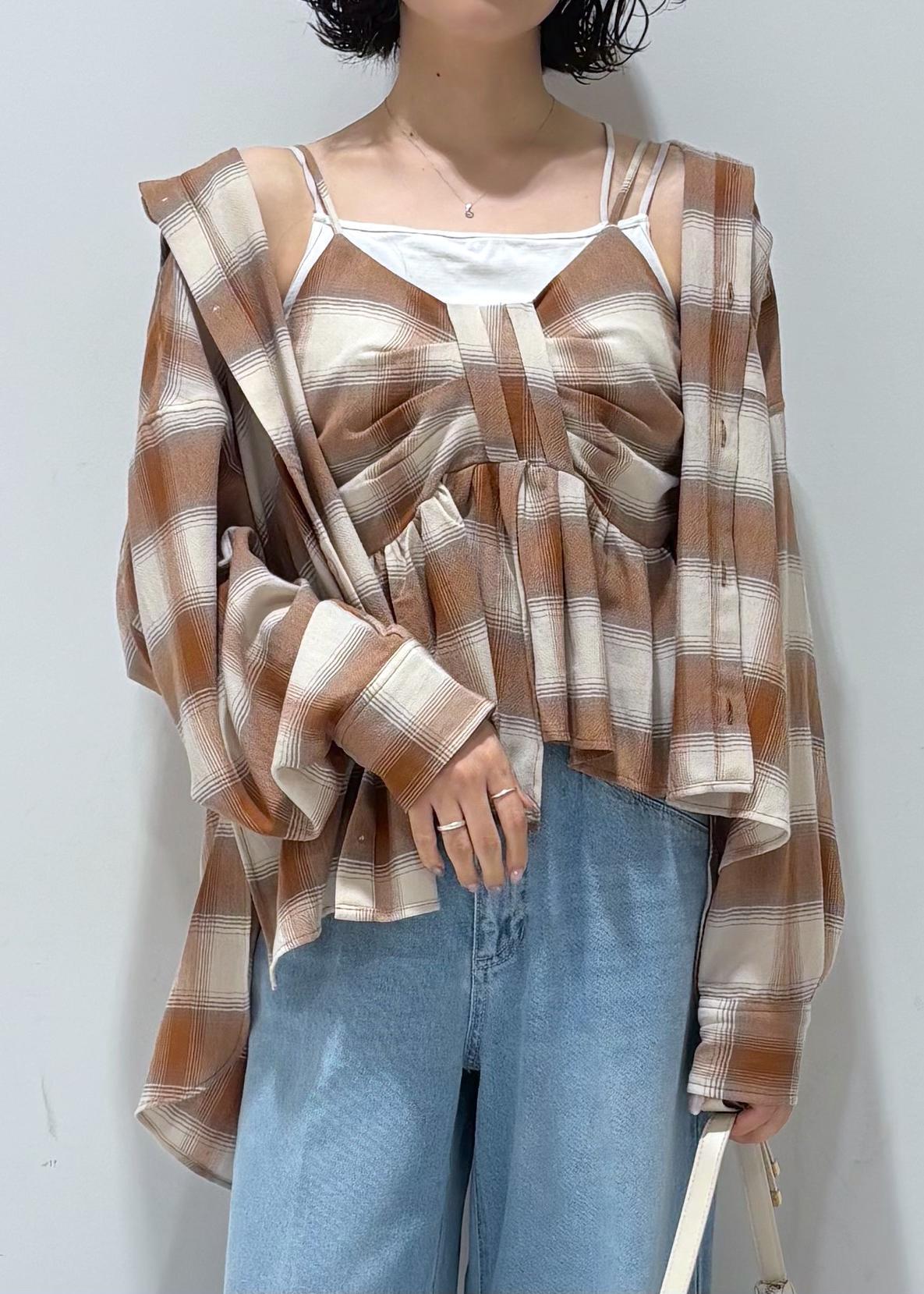 秋は同柄のシャツとの合わせがおすすめです◎ -