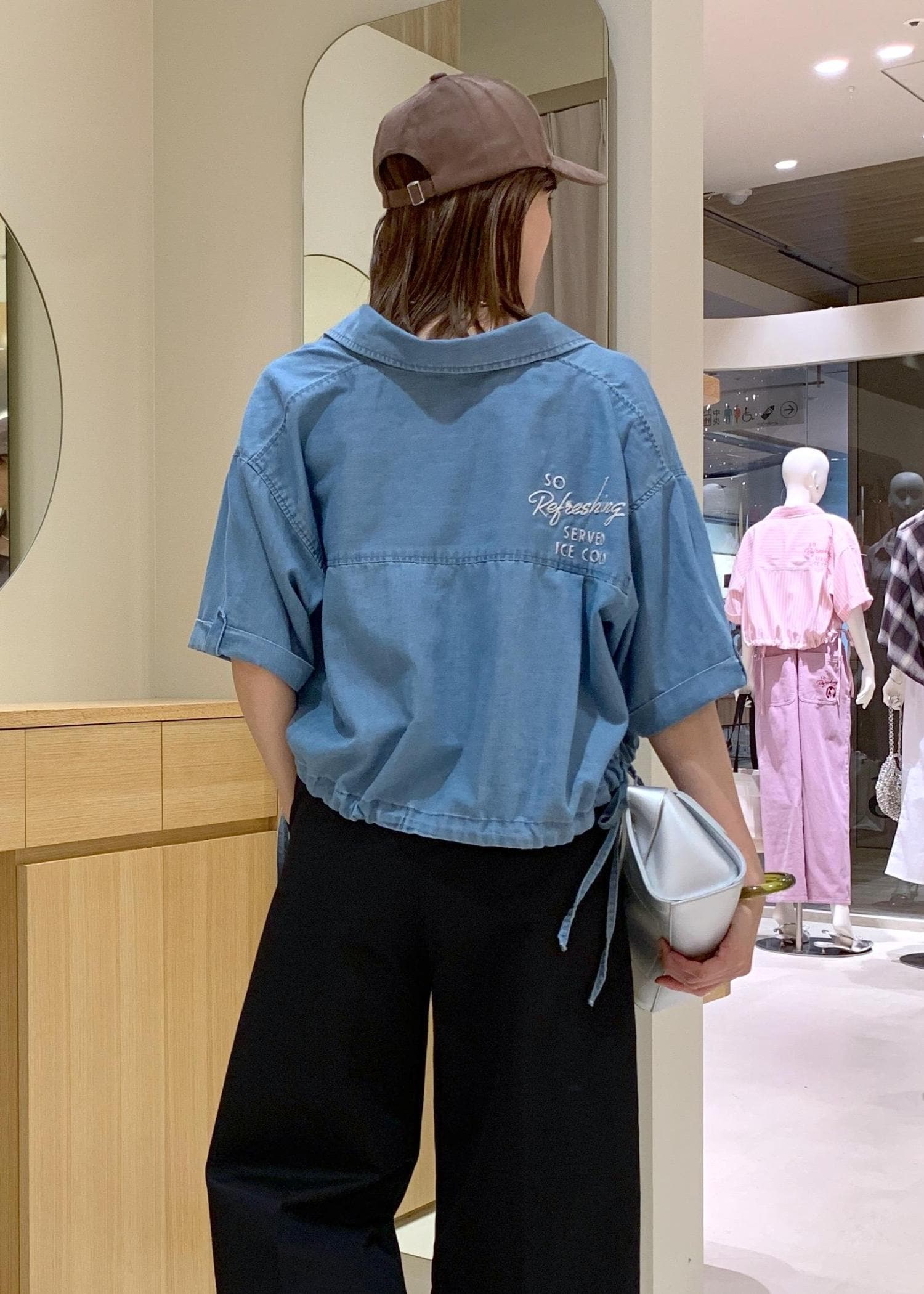 VIS【Coca-Cola】VIS別注バックエンブロイダリークロップドシャツブルー系 / F¥5,390レビュー柔らかい風合いなのと、ハーフスリーブなので暑苦しくありません。裾が絞れるので、形を少し変えながらアレンジできるのが◎今の時期からこれから迎える秋に大活躍しそうです。