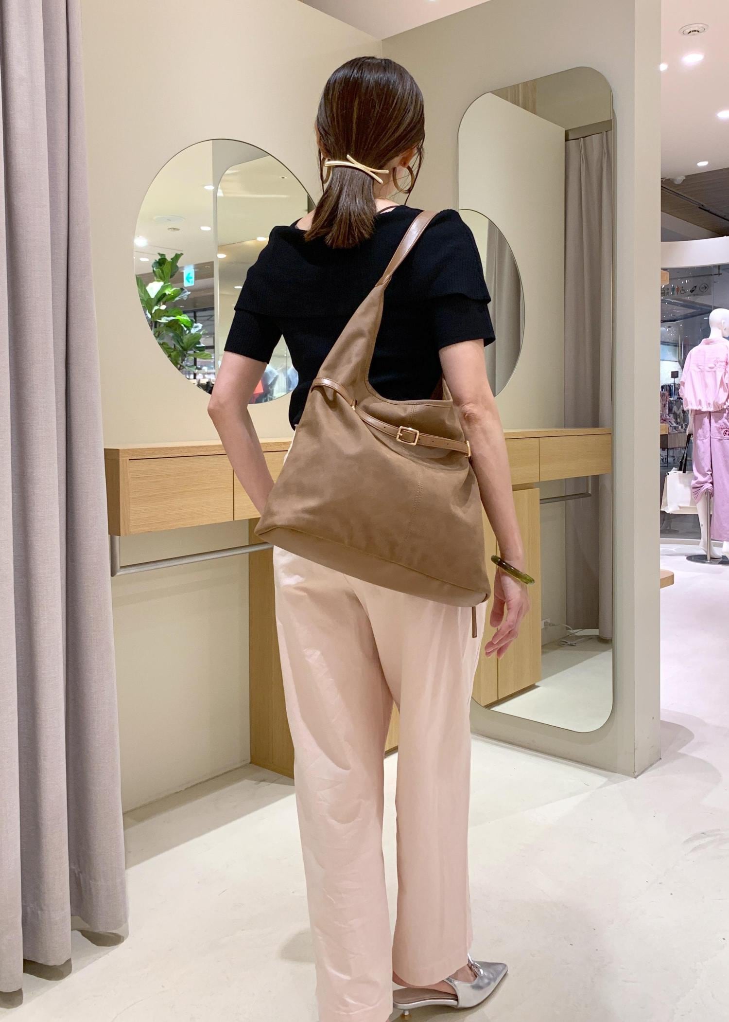 ショルダー部分は長さ調整できるので、アームも通しやすいですよ。バック自体は軽量で深さもあるので、収納も抜群です! -