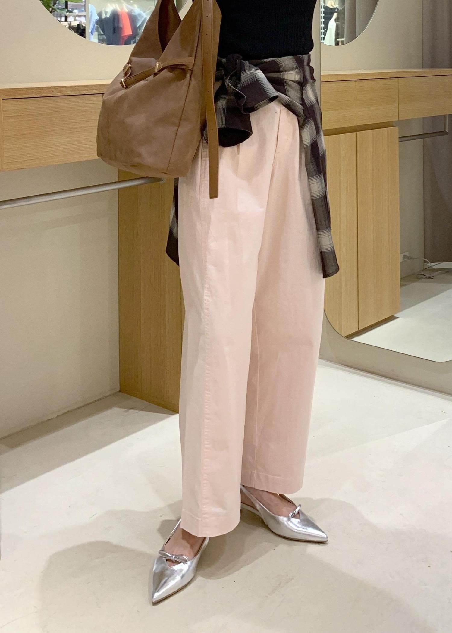アウトレットVISバレルシルエットコットンパンツピンク / F¥3,460レビュー綿素材でさっぱりとした質感で着用できます。生地は薄手なので暑苦しくありません。ポリウレタンが少し入っているので、伸縮性があり楽に着用出来ました。