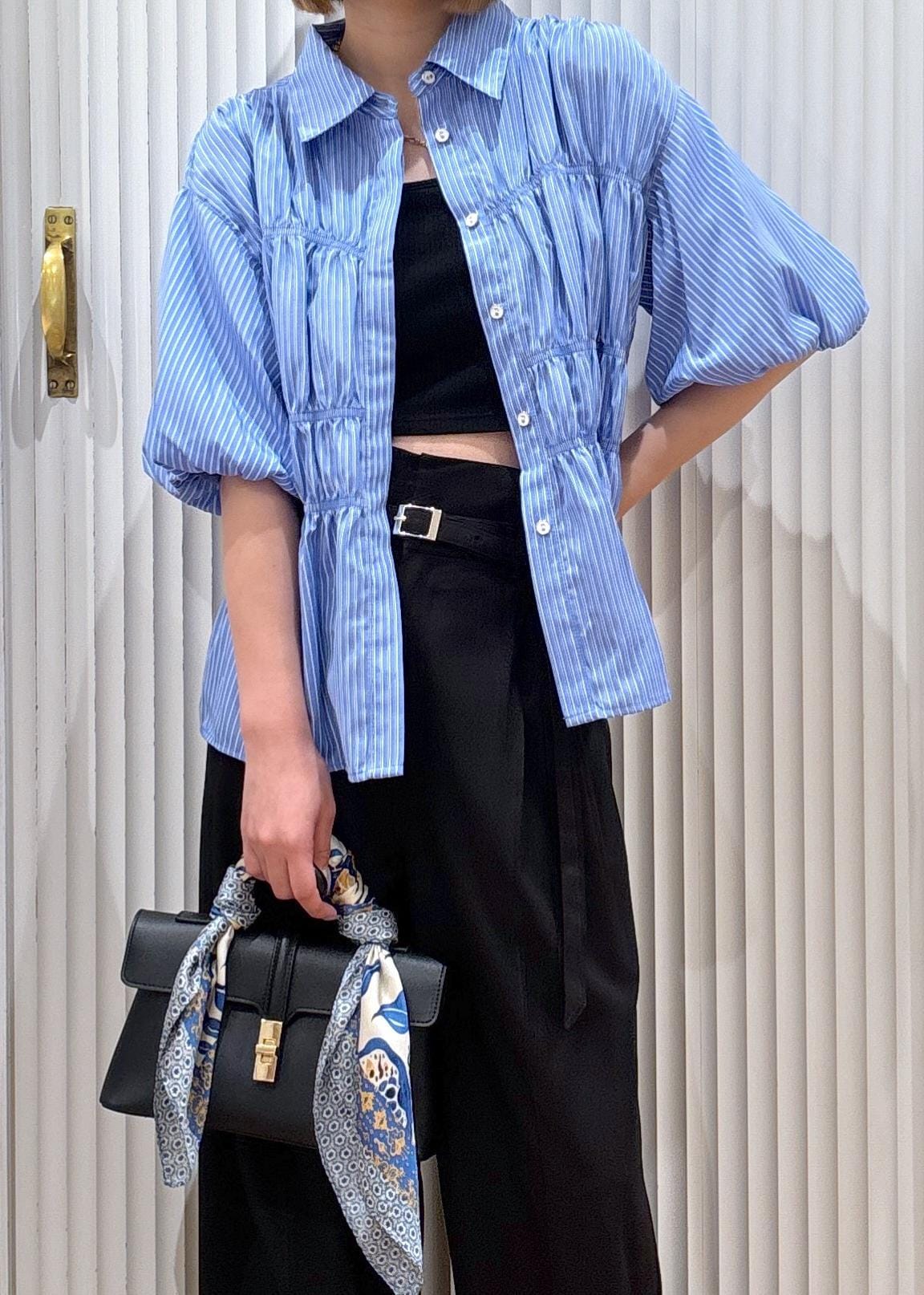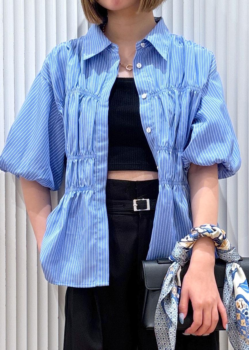 VIS【新色追加】【店頭人気】シャーリングバルーンシャツブルー系 / F¥5,489レビュー大人気のシャーリングブラウスの半袖です!