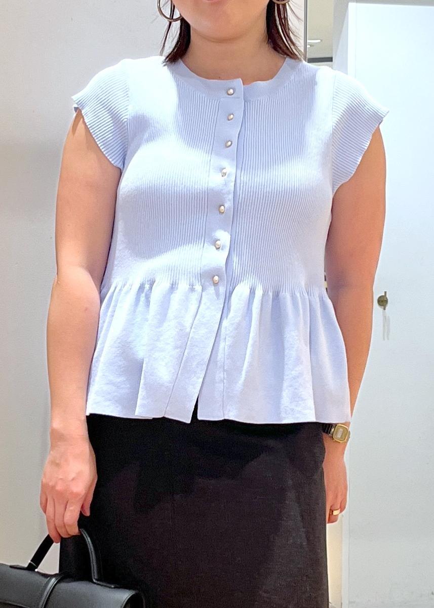 ゆれ感がかわいいペプラムカーディガンは、サラッとしたサマーニット生地ですが、柔らかくストレッチも効いていて、1枚で色々とコーデを楽しめるアイテムです♡