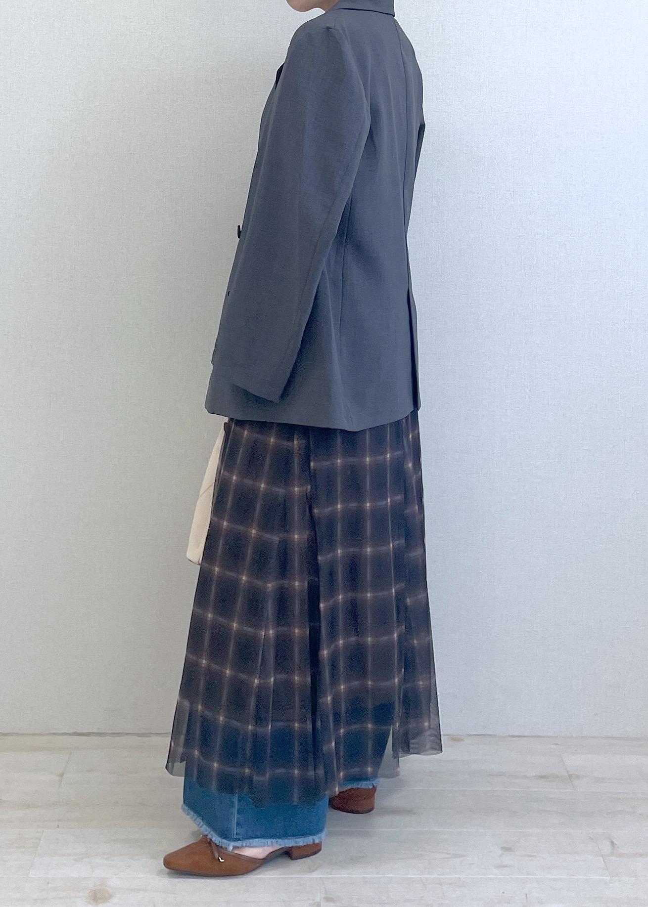 裏地が少し短めのお作りなので、パンツと重ねて、レイヤードスタイルもオススメです! -