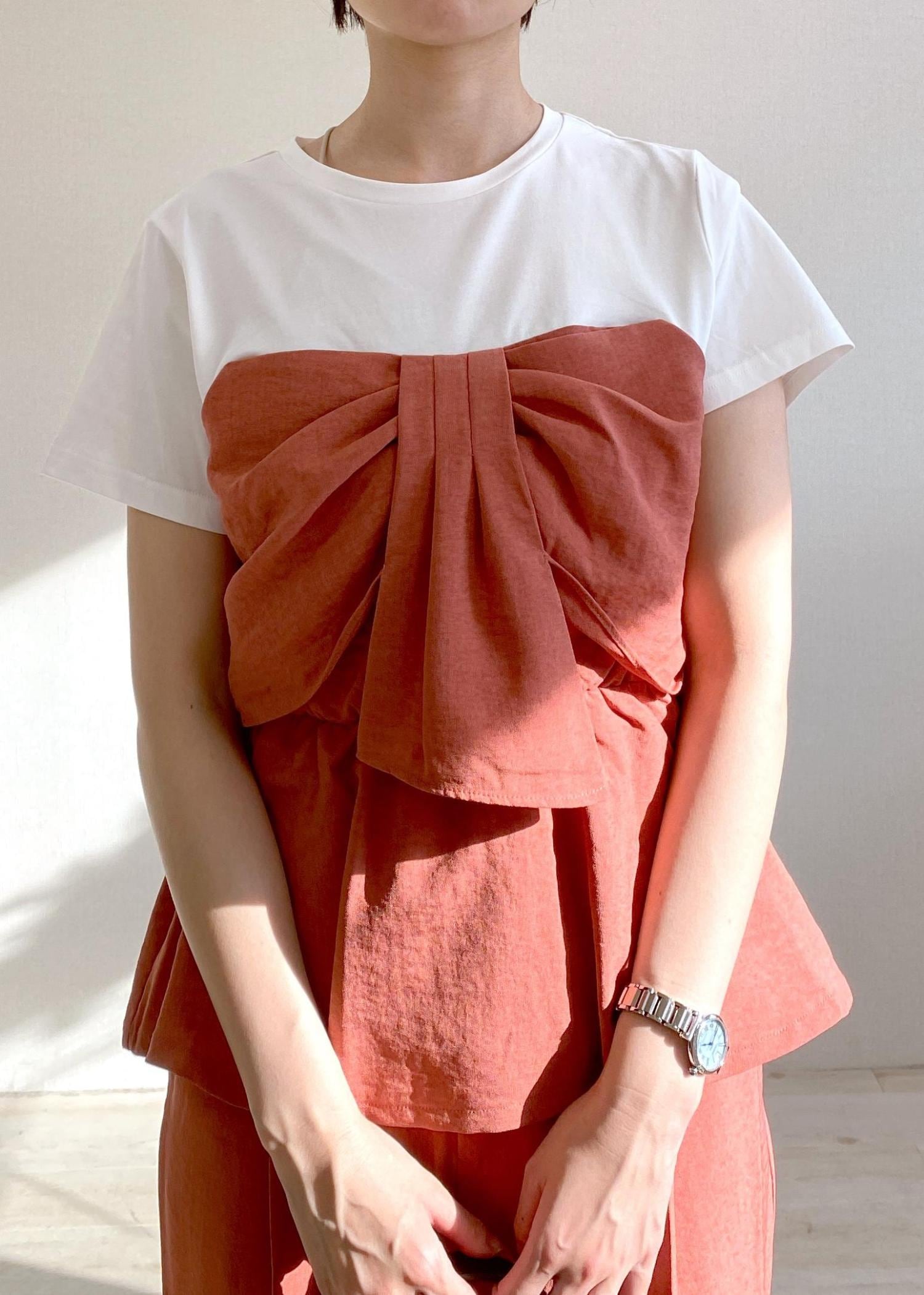 VIS【新色追加】【美easy】ねじりリボンTシャツドッキングプルオーバー【接触冷感/洗える】オレンジ系 / F¥5,489レビュービスチェドッキングで1枚で決まるのが嬉しいです。